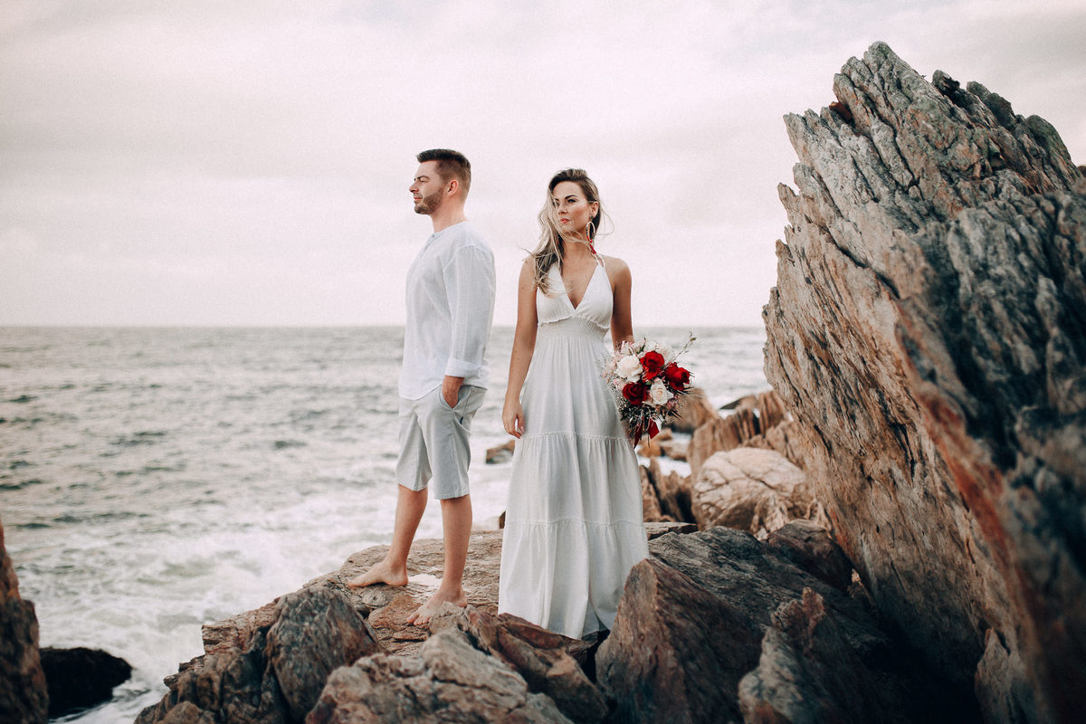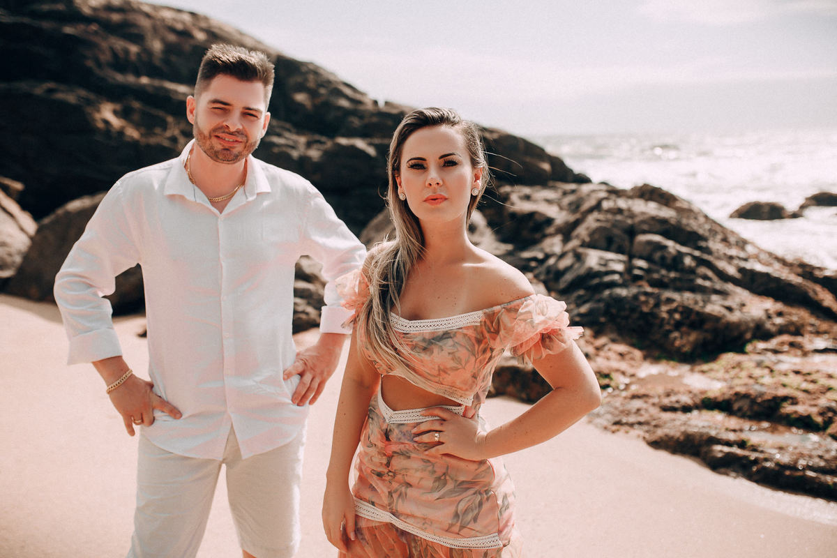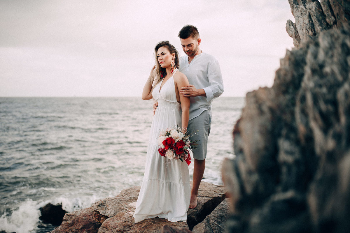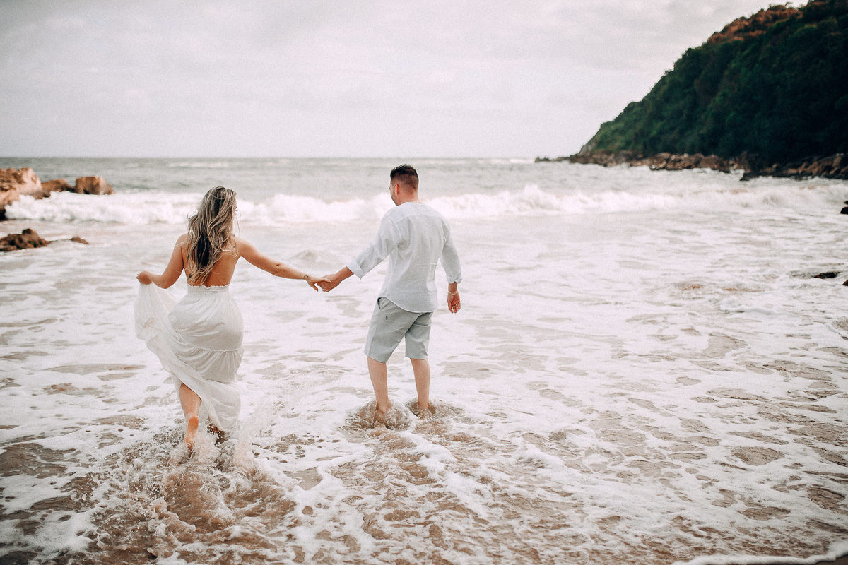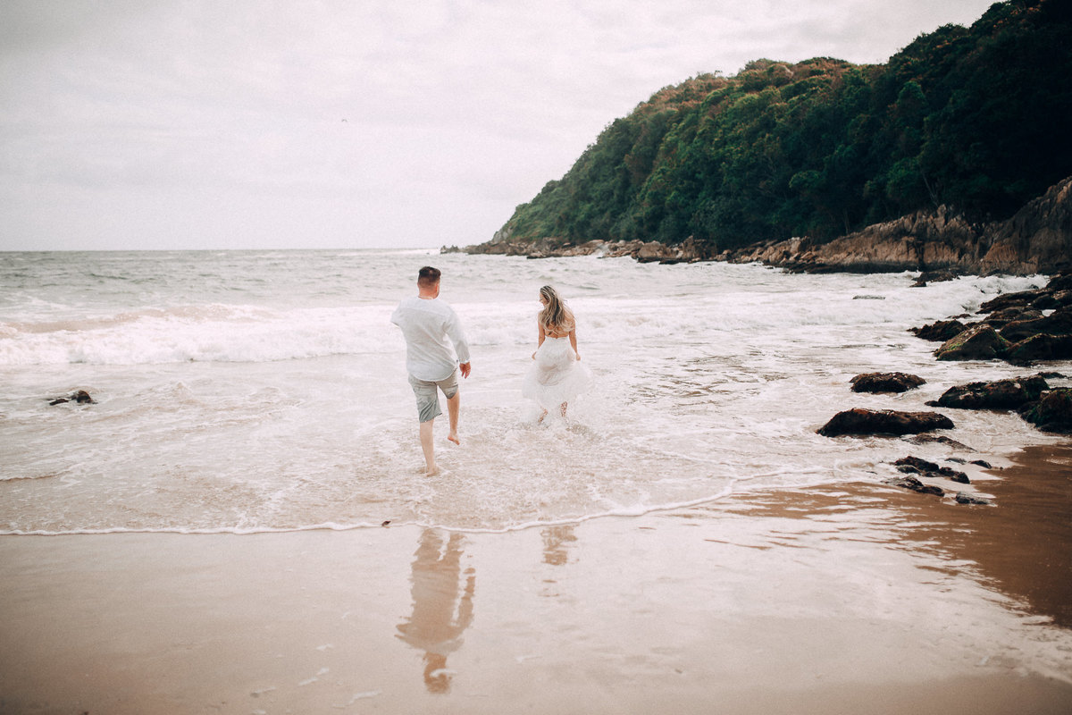 De repente se fez silêncio e o tempo começou a abrir, pois, como dizem, depois da tempestade vem a calmaria, e aí foi uma alegria só. Chegamos na praia cerca de 6:30, não teve nascer do sol pois ficou nubladinho no início da manhã, mas de qualquer forma as fotos ficaram lindas e nos divertimos um bocado. Eles seguiram à risca as minhas dicas e além de uma produção linda acatavam todas as minhas ideias. O resultado? Um dia incrível que ficará para sempre na memória.