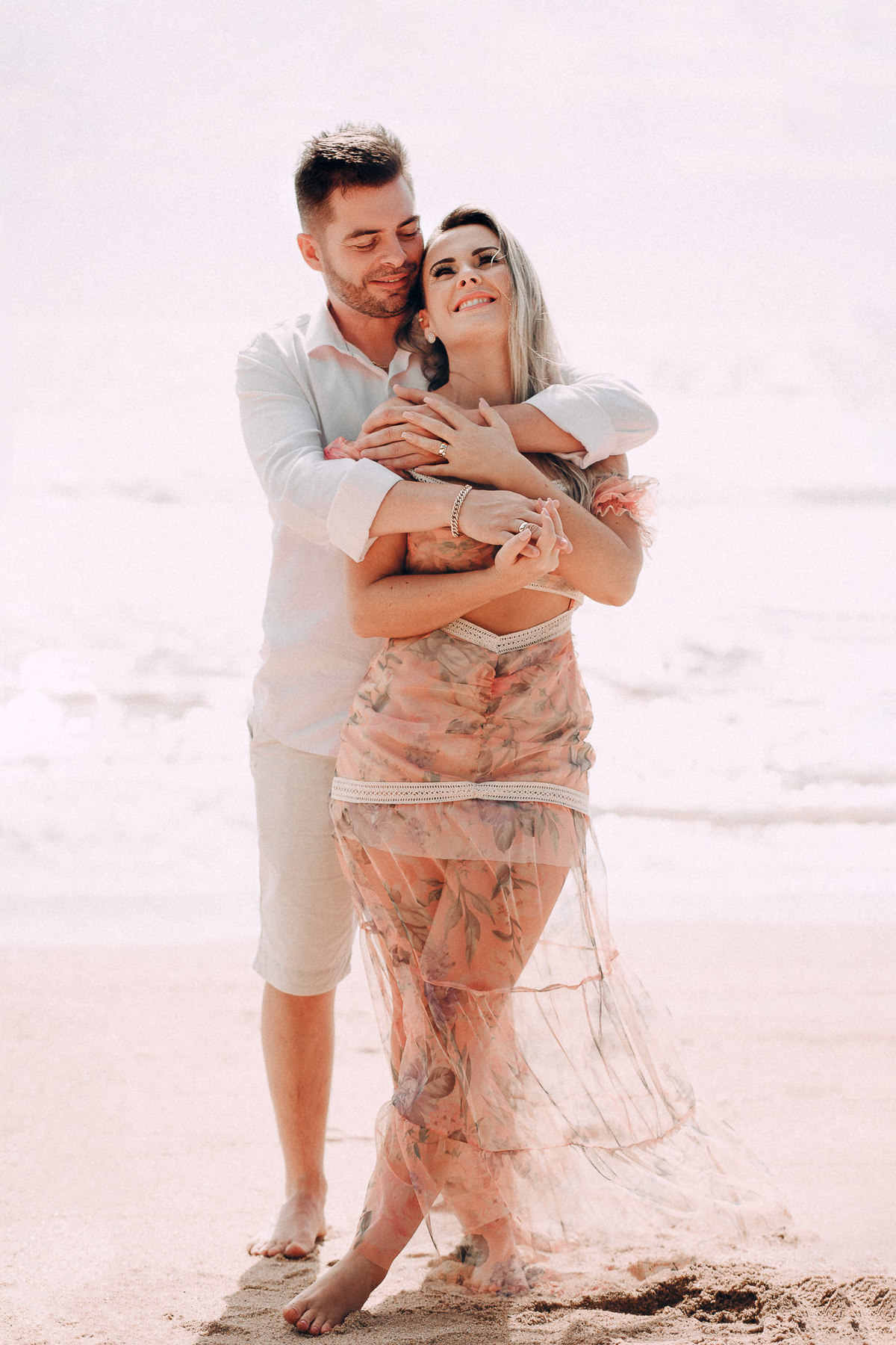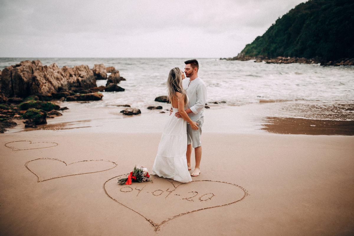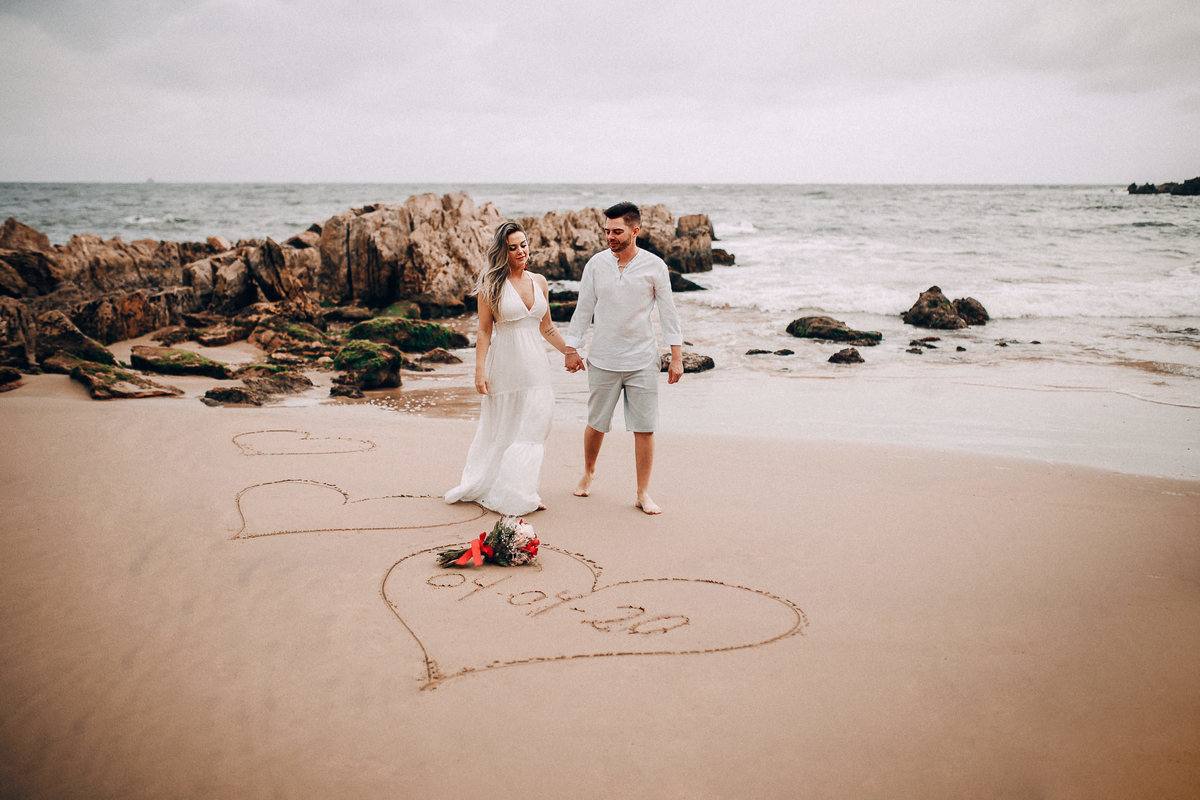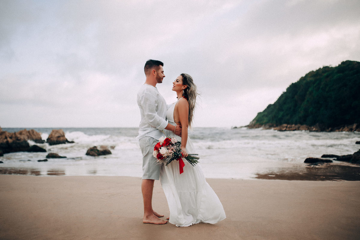 De repente se fez silêncio e o tempo começou a abrir, pois, como dizem, depois da tempestade vem a calmaria, e aí foi uma alegria só. Chegamos na praia cerca de 6:30, não teve nascer do sol pois ficou nubladinho no início da manhã, mas de qualquer forma as fotos ficaram lindas e nos divertimos um bocado. Eles seguiram à risca as minhas dicas e além de uma produção linda acatavam todas as minhas ideias. O resultado? Um dia incrível que ficará para sempre na memória.