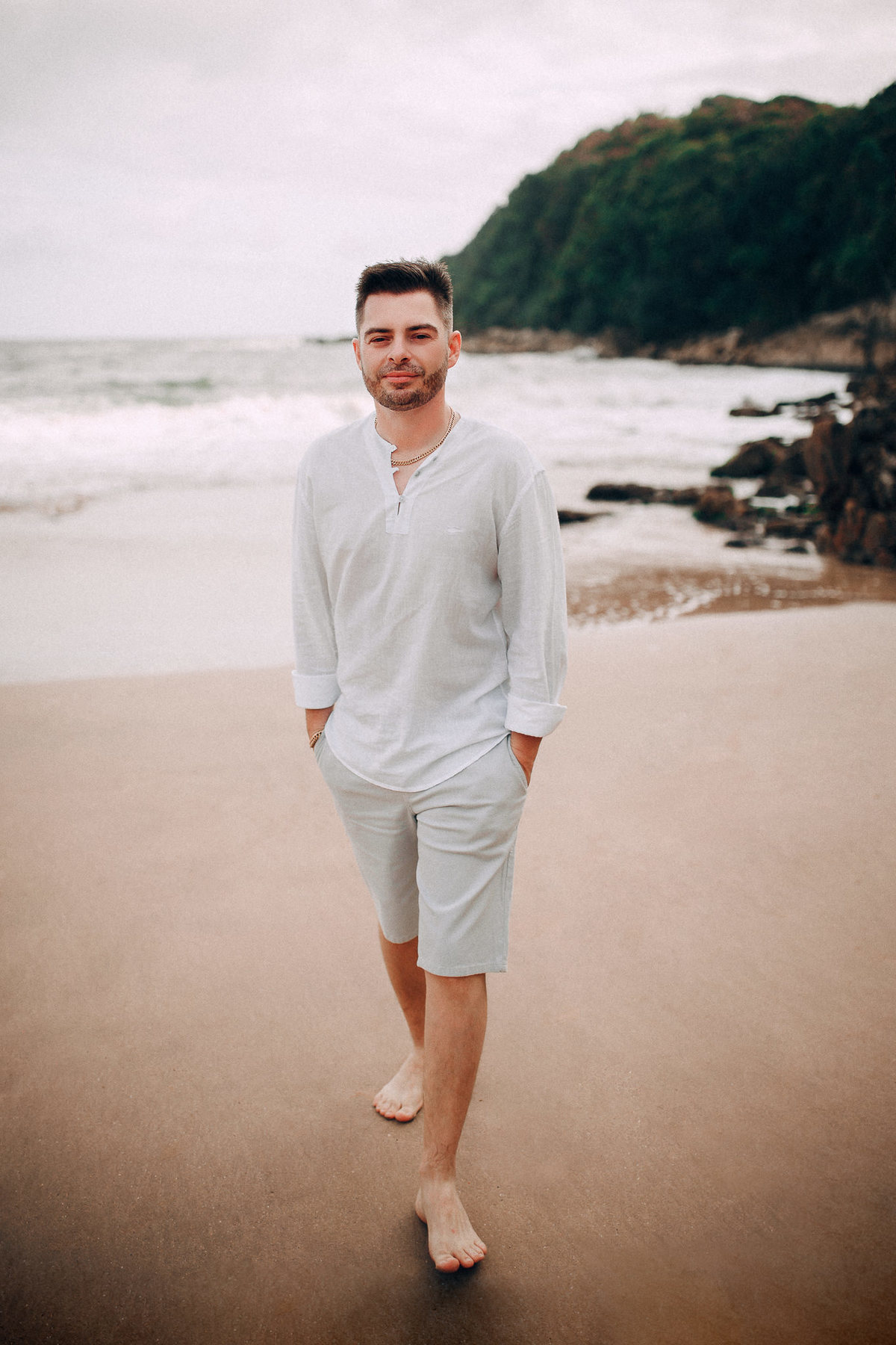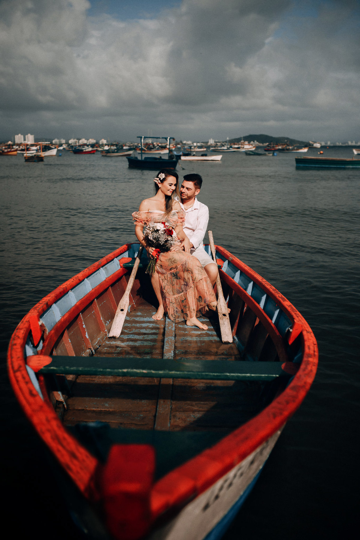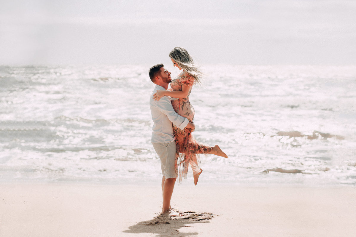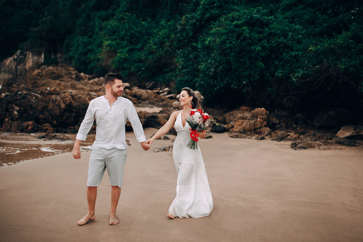 De repente se fez silêncio e o tempo começou a abrir, pois, como dizem, depois da tempestade vem a calmaria, e aí foi uma alegria só. Chegamos na praia cerca de 6:30, não teve nascer do sol pois ficou nubladinho no início da manhã, mas de qualquer forma as fotos ficaram lindas e nos divertimos um bocado. Eles seguiram à risca as minhas dicas e além de uma produção linda acatavam todas as minhas ideias. O resultado? Um dia incrível que ficará para sempre na memória.