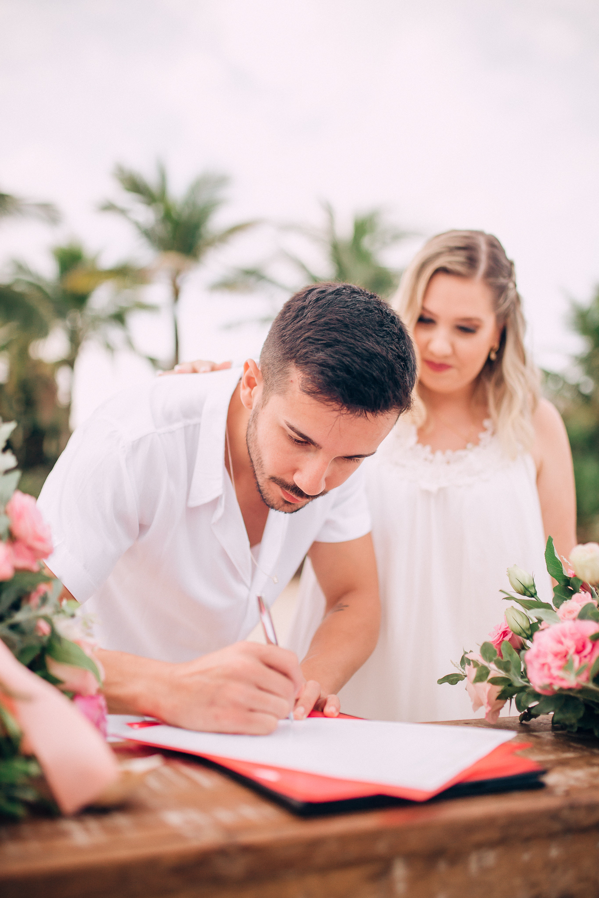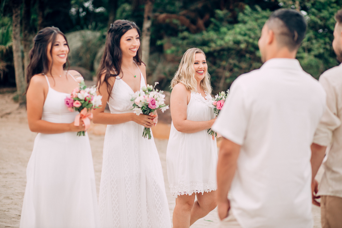 Quando eu digo que cada casamento tem que ser do jeitinho do casal, com a sua personalidade, e fugir do que “todo mundo faz” não é da boca para fora. É o que faz mais sentido! A Samanta me procurou meses atrás falando da ideia de se casarem na praia, ela, seu noivo e outros dois casais de amigos. E só! Sem convidados. Por que isso fazia muito sentido para eles. Então dei minhas sugestões (especialmente em relação a quantidade de fotógrafos, local, horário, decor e celebrante) e eis que aconteceu o casamento mais diferente dos últimos tempos.