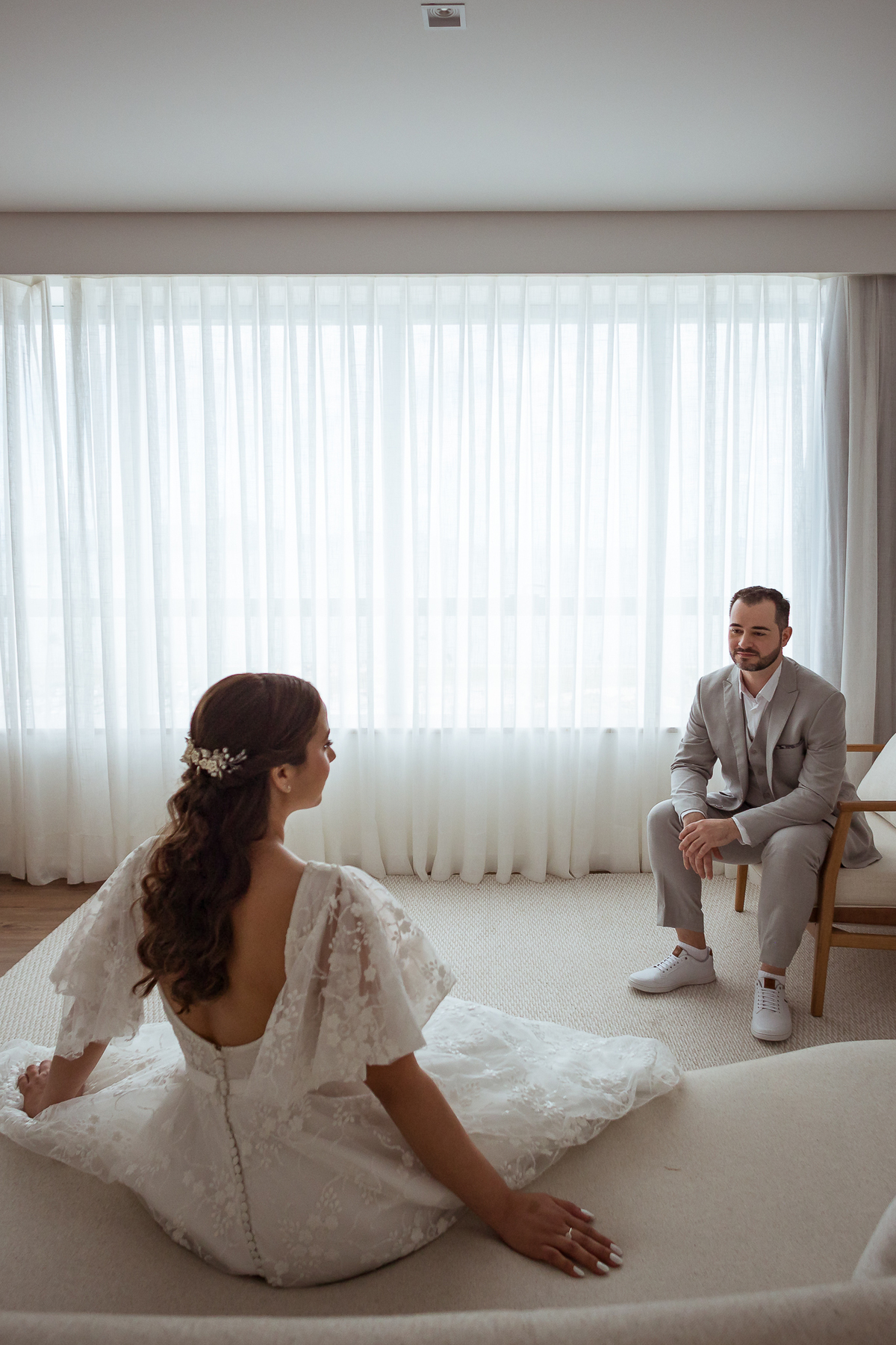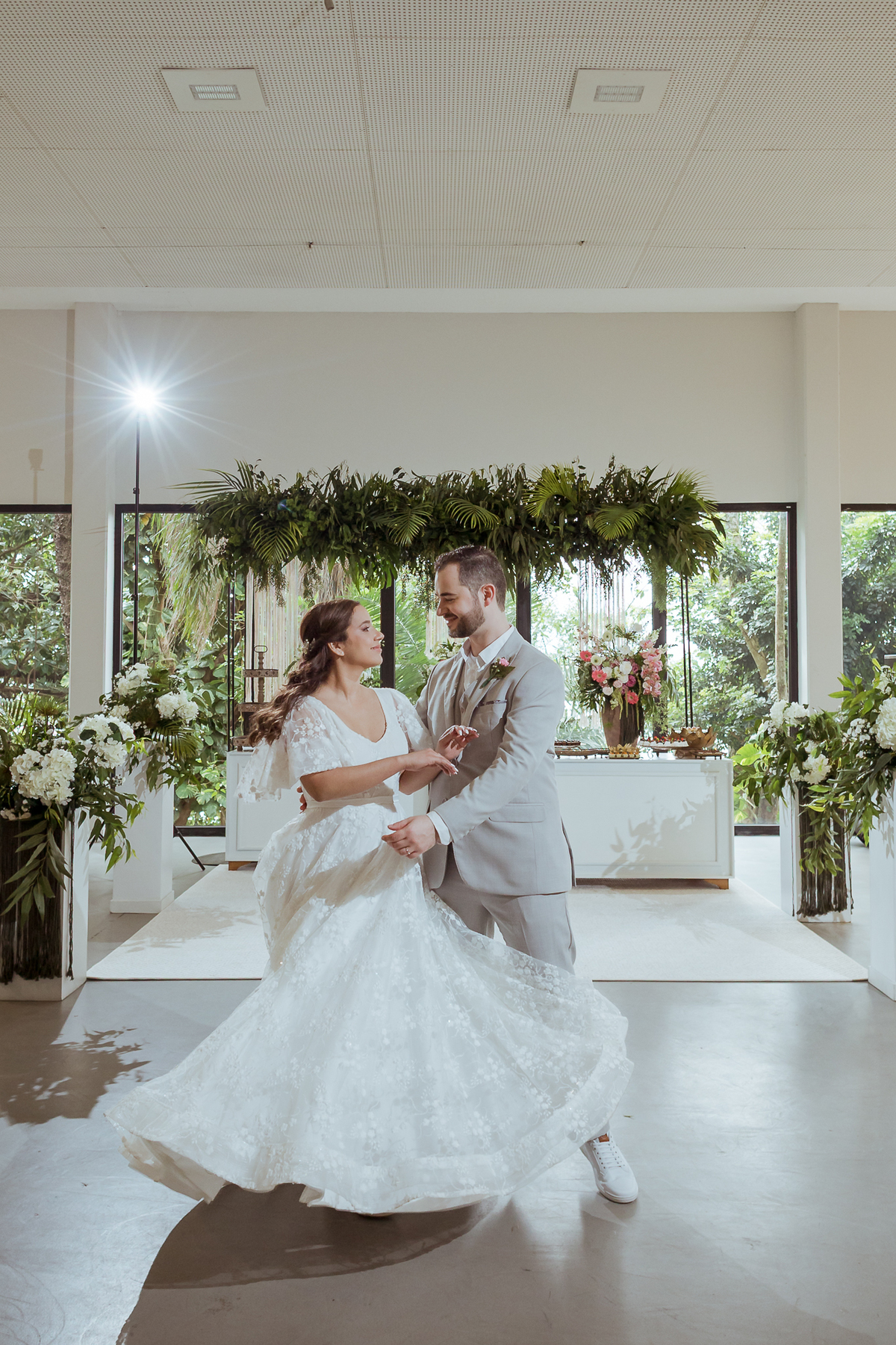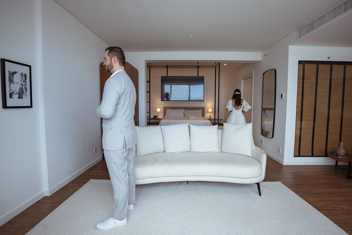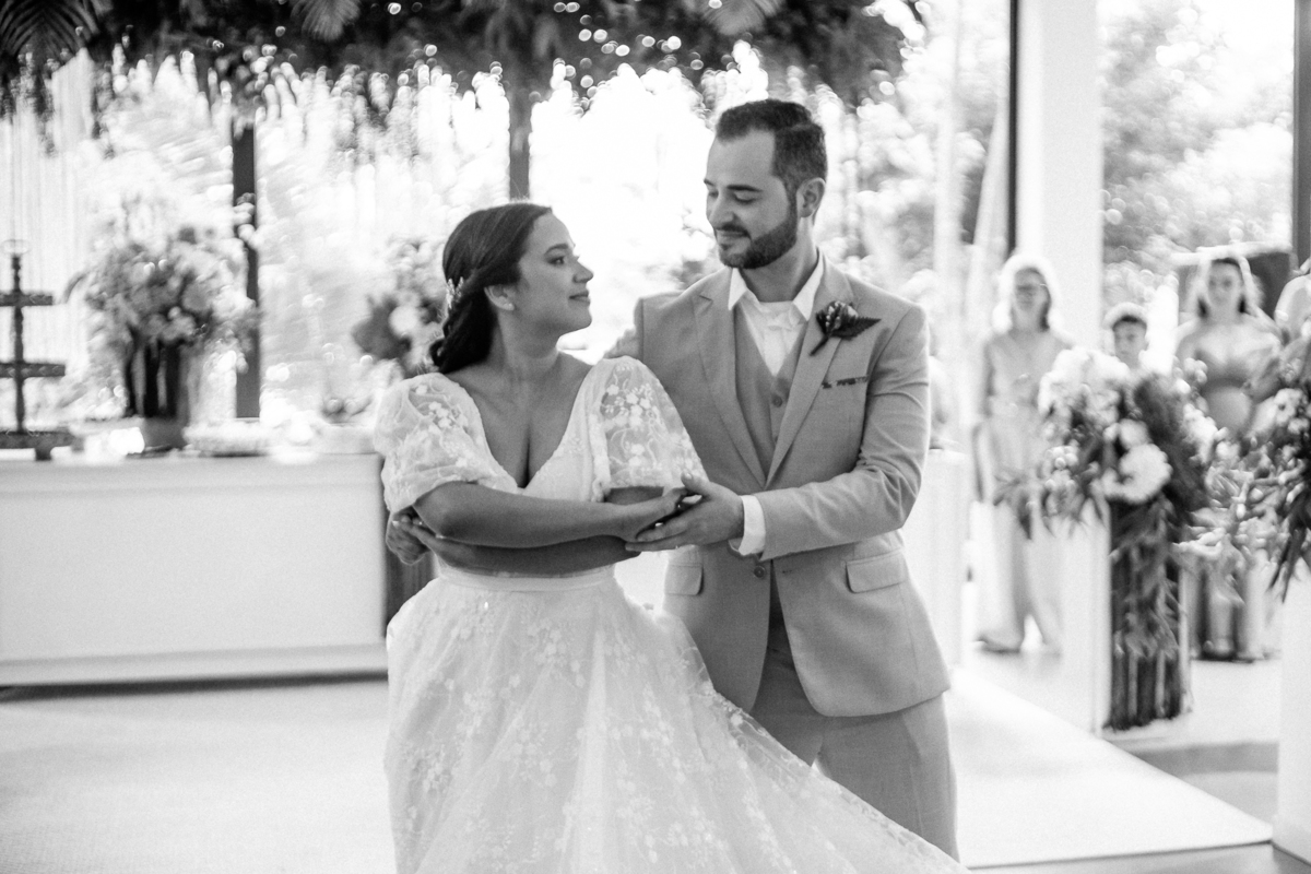 Antes do “sim”, os dois se arrumaram no mesmo hotel, mas em quartos separados. Viveram um emocionante first look, quando se viram já prontos, e seguiram juntos para a cerimônia. Também compartilharam o momento de ver a decoração do salão antes de todos — um gesto que traduziu bem a parceria construída ao longo de quase duas décadas.