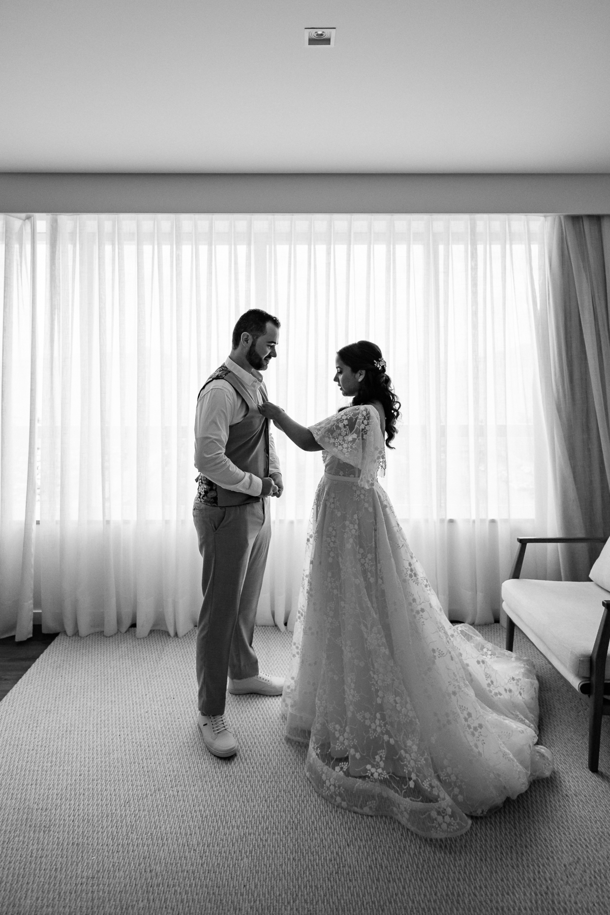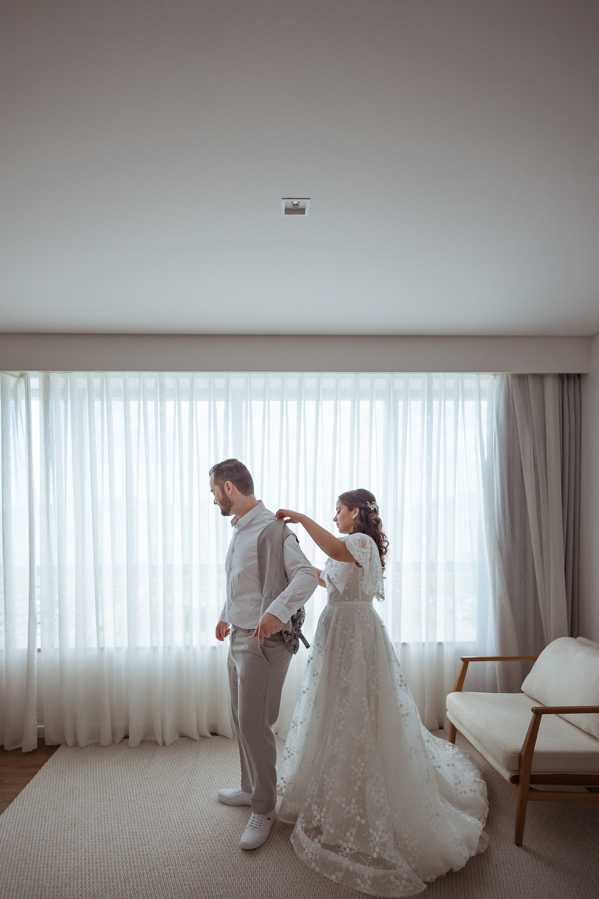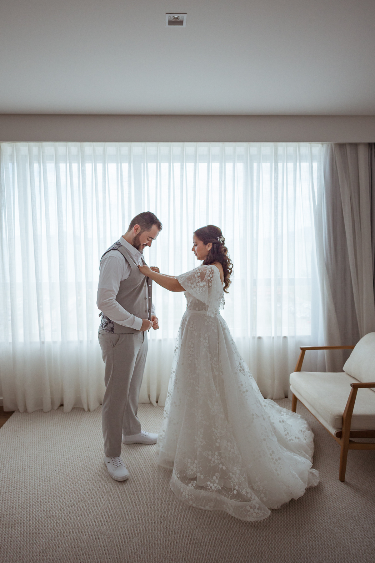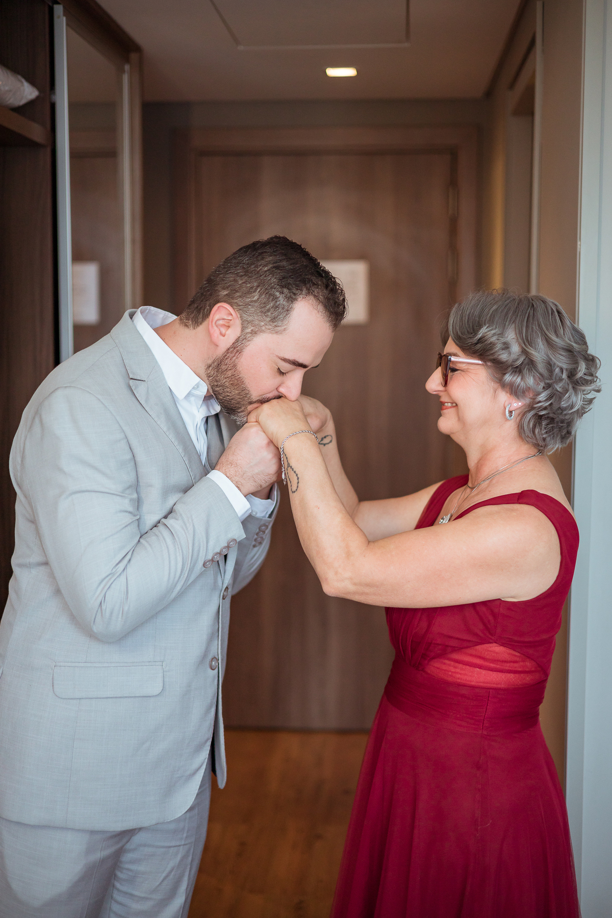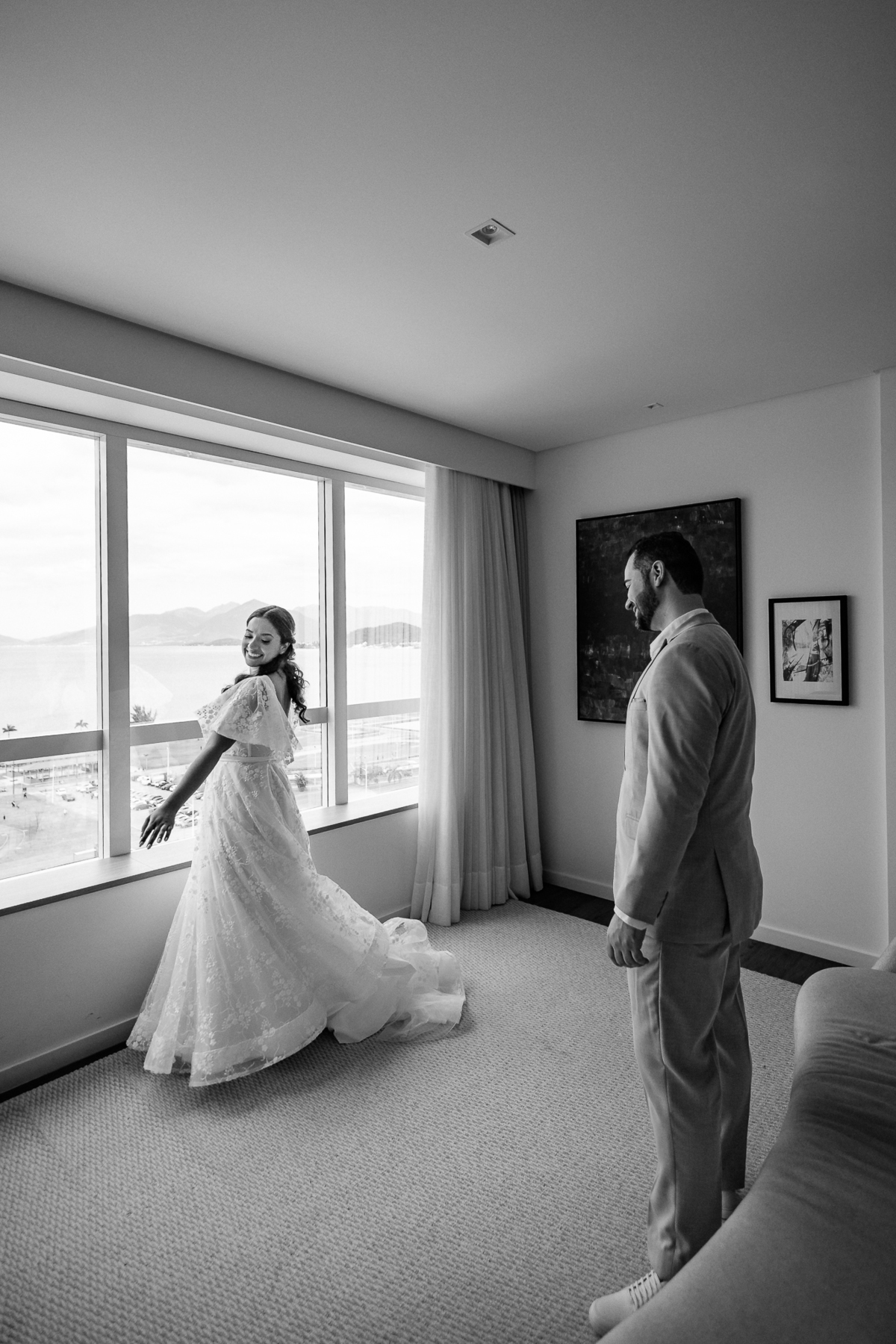 Antes do “sim”, os dois se arrumaram no mesmo hotel, mas em quartos separados. Viveram um emocionante first look, quando se viram já prontos, e seguiram juntos para a cerimônia. Também compartilharam o momento de ver a decoração do salão antes de todos — um gesto que traduziu bem a parceria construída ao longo de quase duas décadas.