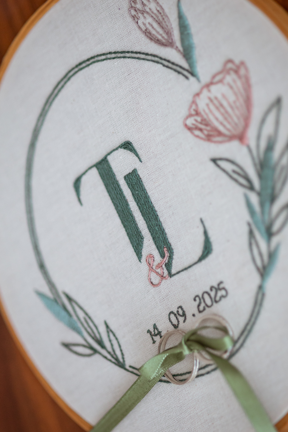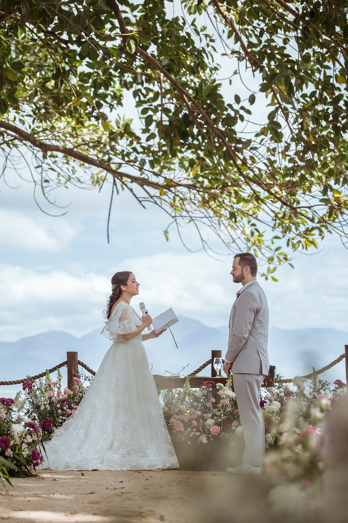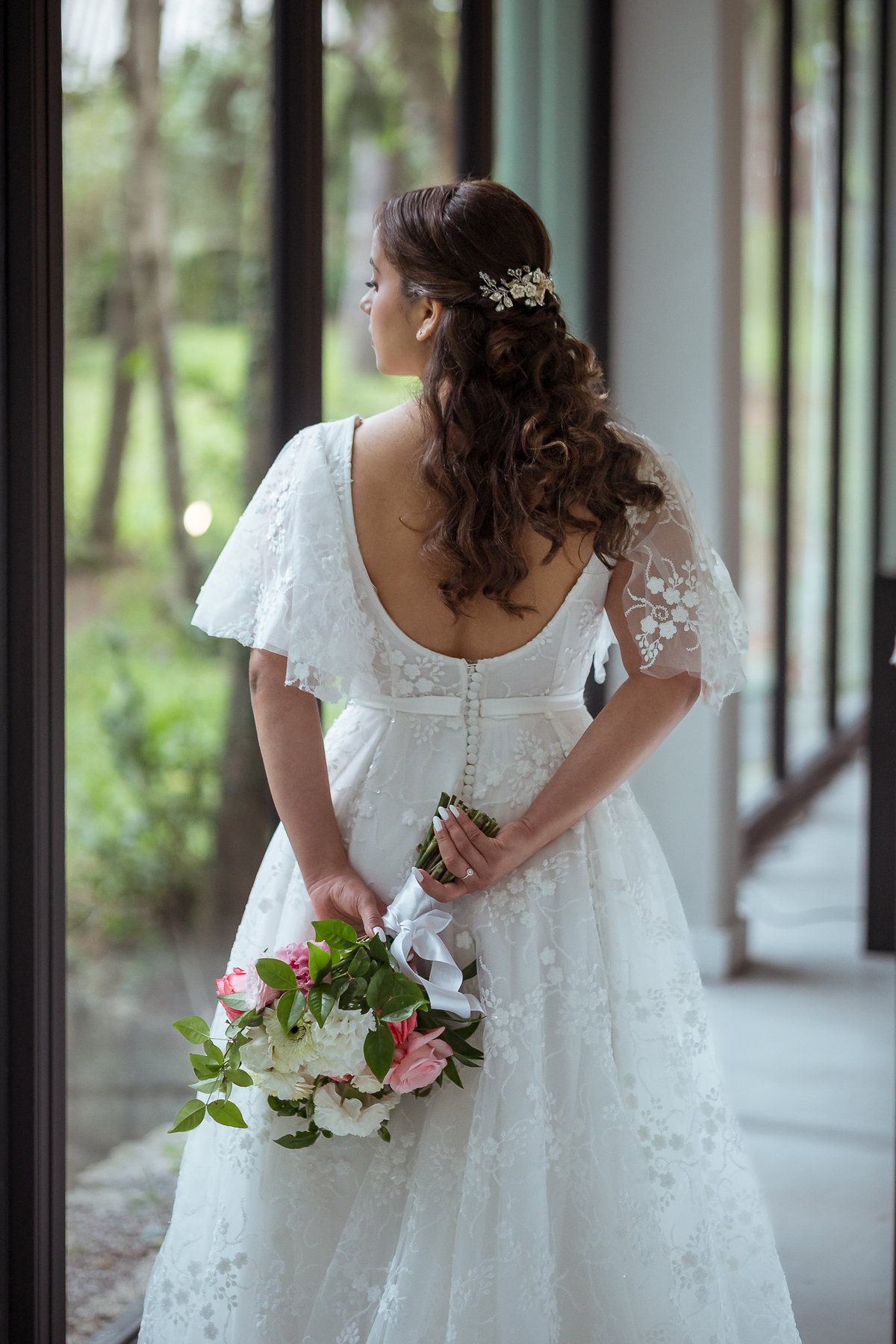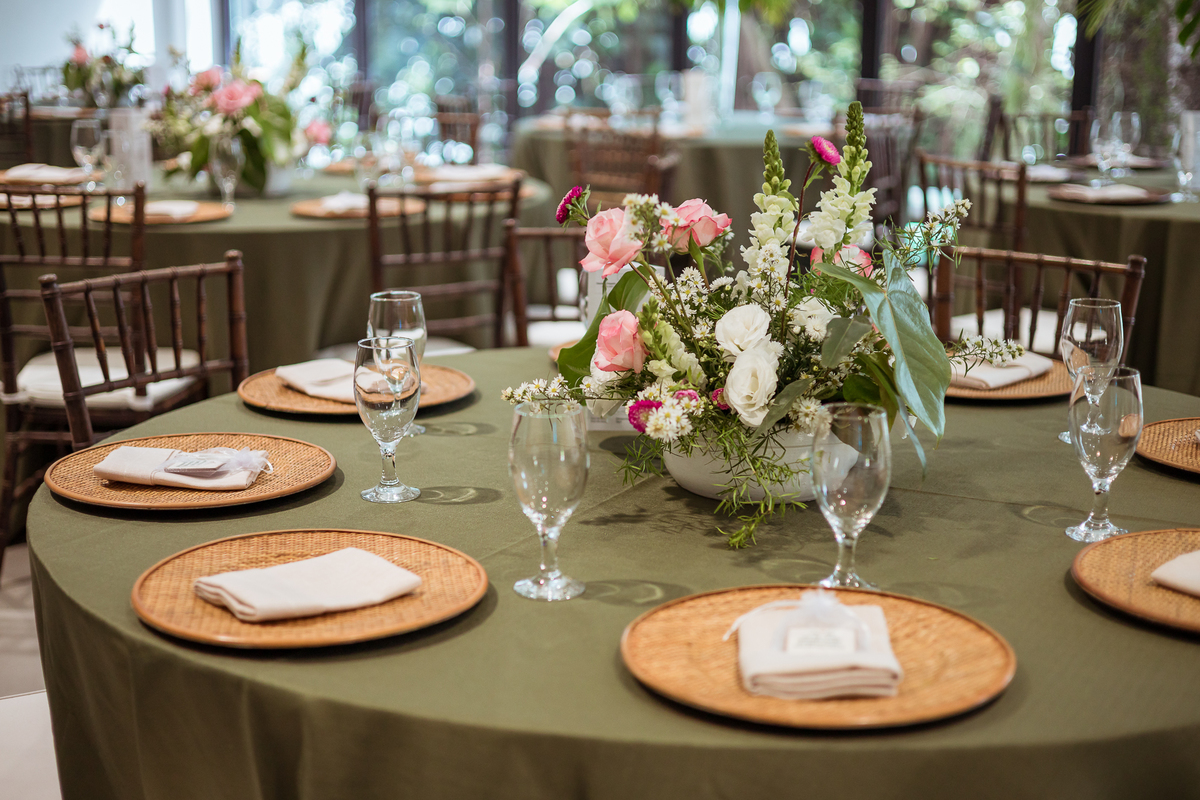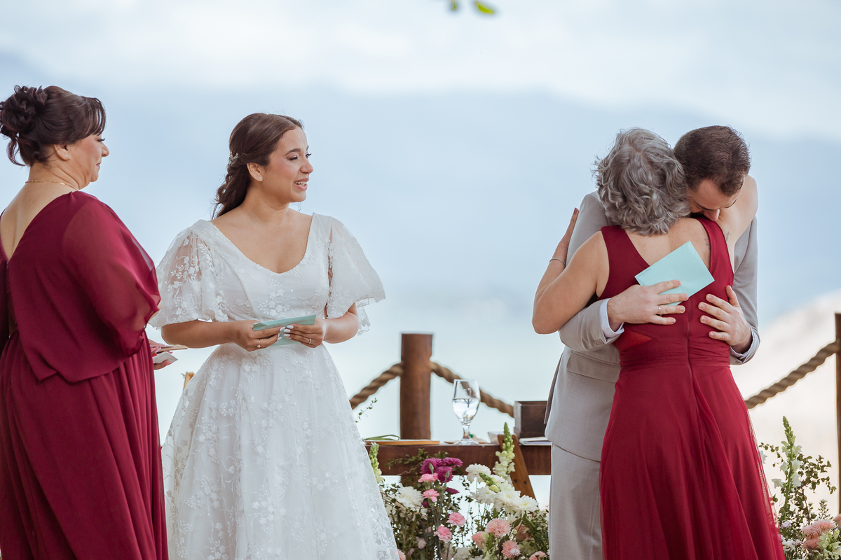 A cerimônia aconteceu em uma manhã de domingo, embaixo de uma árvore no Lusch Garden, com o mar como testemunha. O casal sempre sonhou com um almoço de domingo reunindo família e amigos — e foi exatamente assim: íntimo, afetivo e cheio de leveza.