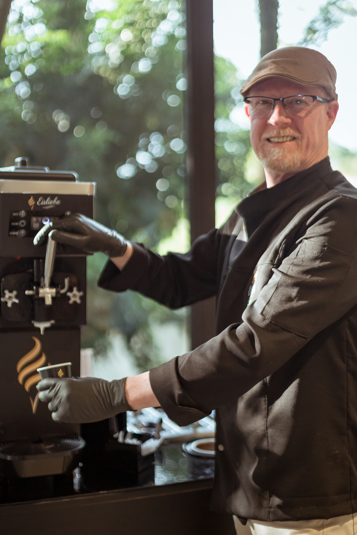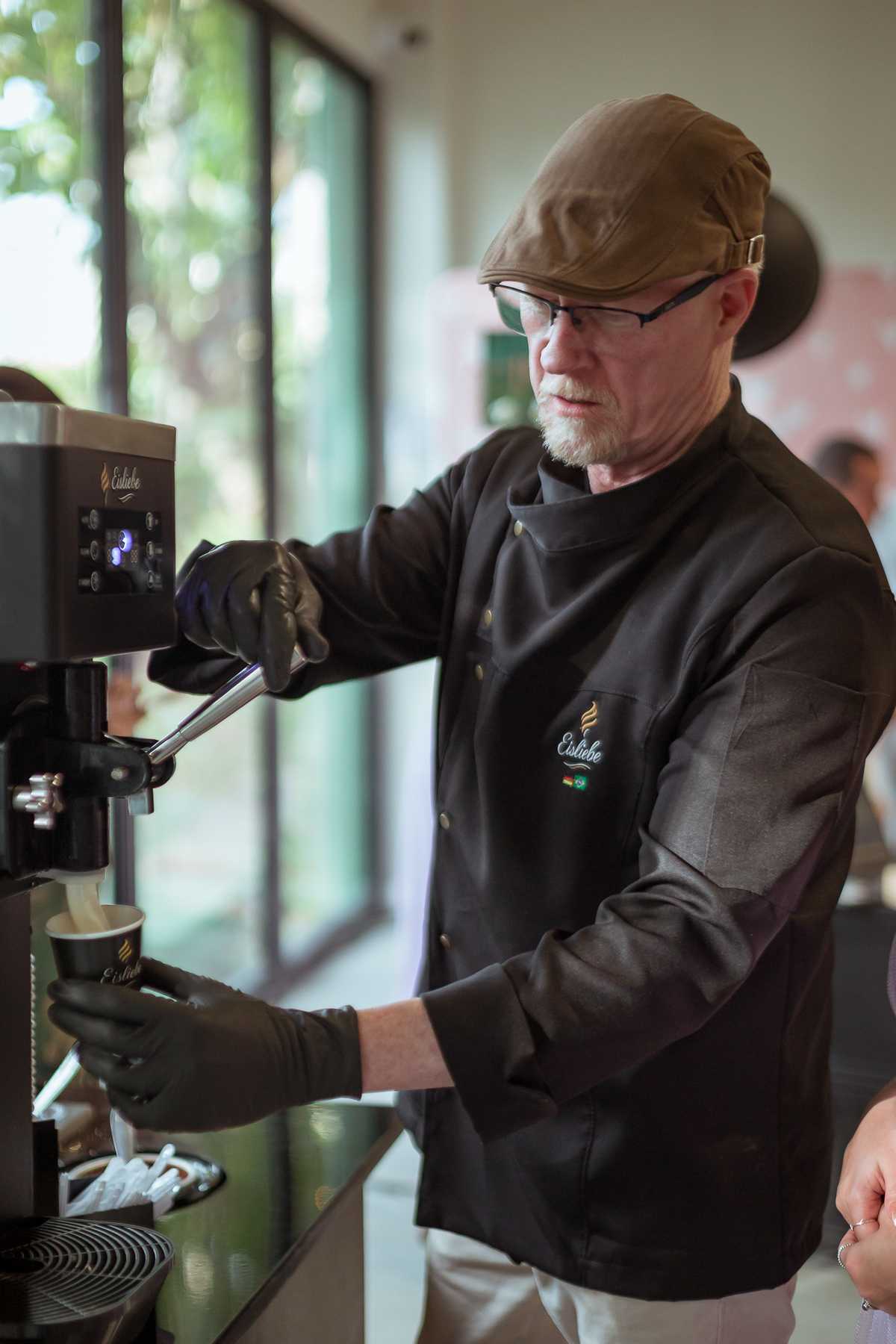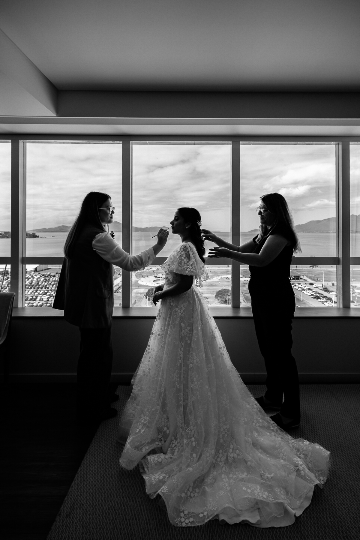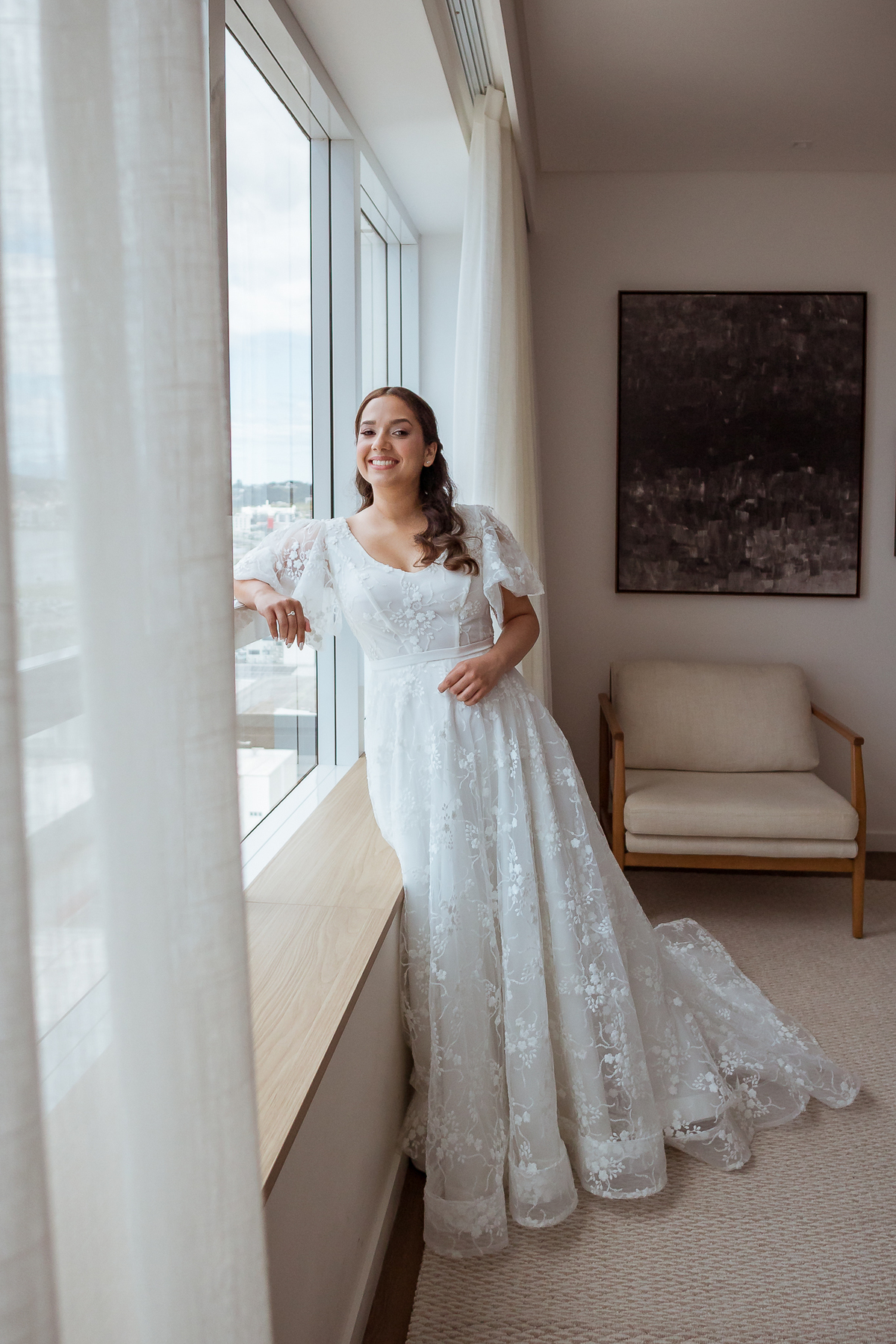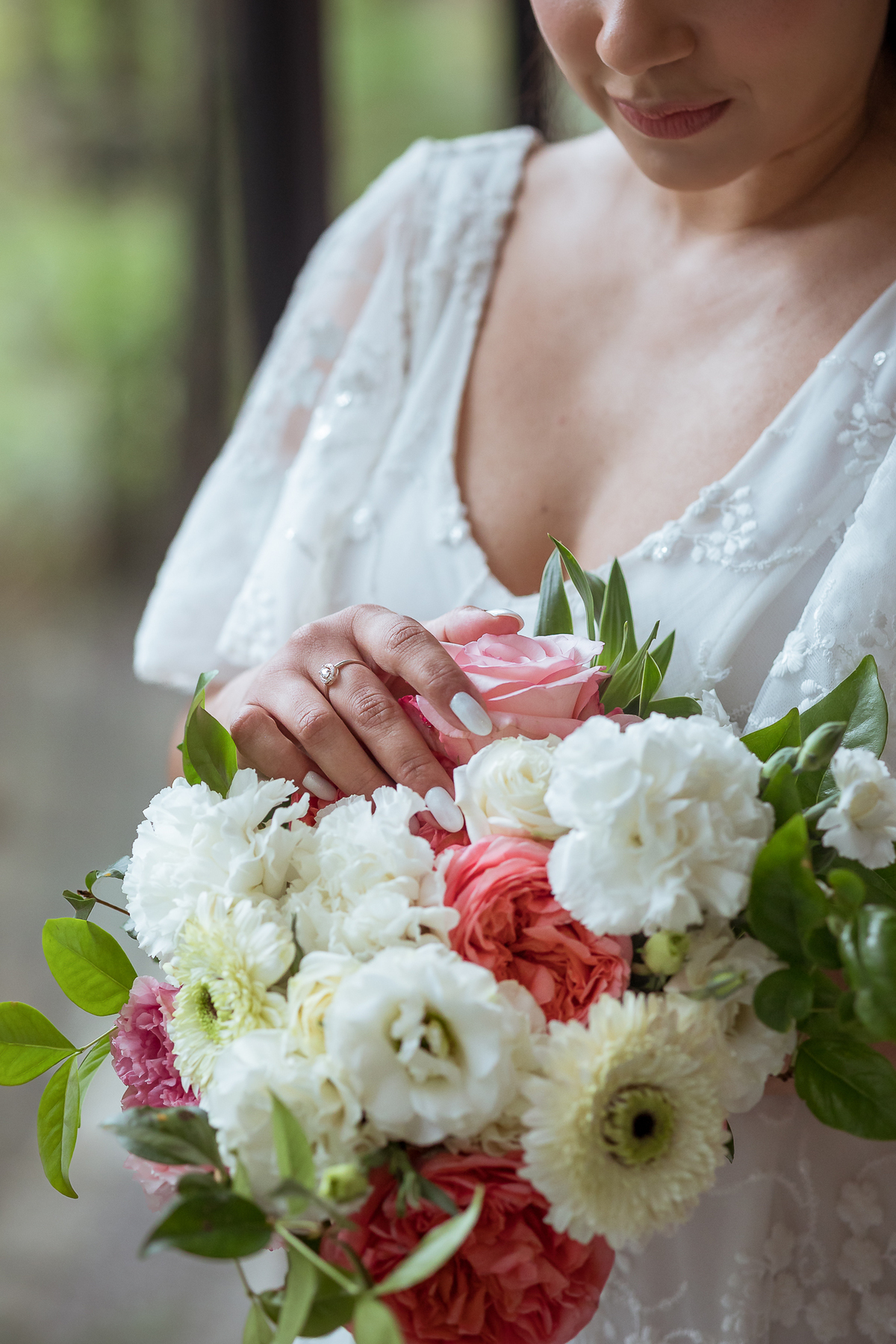A cerimônia aconteceu em uma manhã de domingo, embaixo de uma árvore no Lusch Garden, com o mar como testemunha. O casal sempre sonhou com um almoço de domingo reunindo família e amigos — e foi exatamente assim: íntimo, afetivo e cheio de leveza.