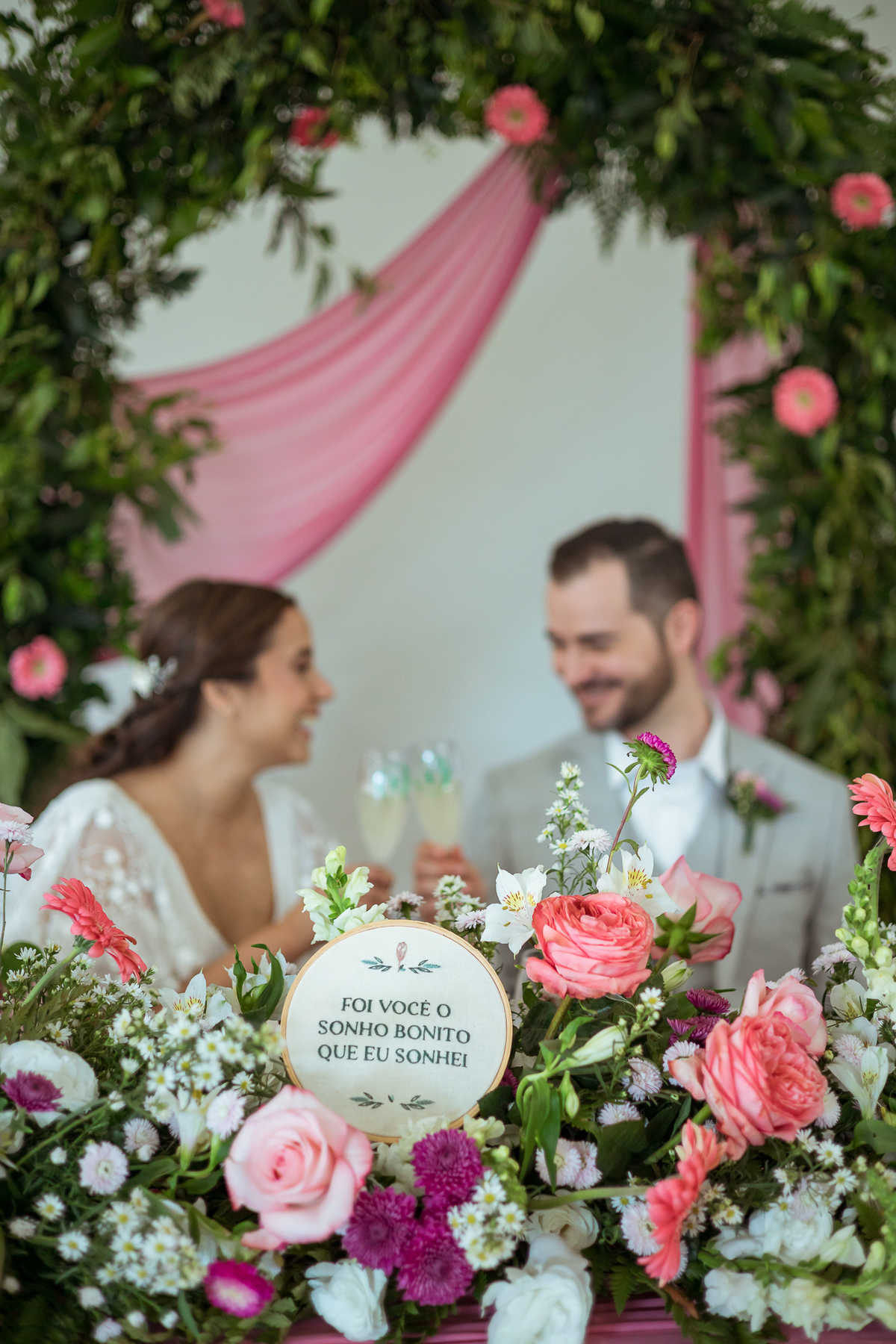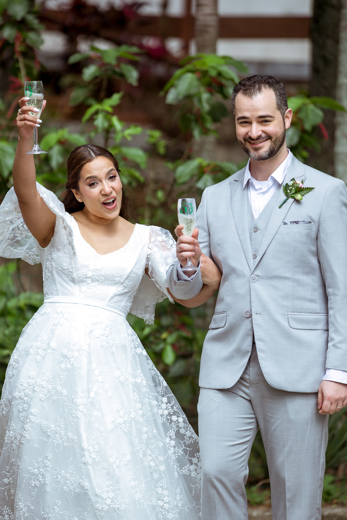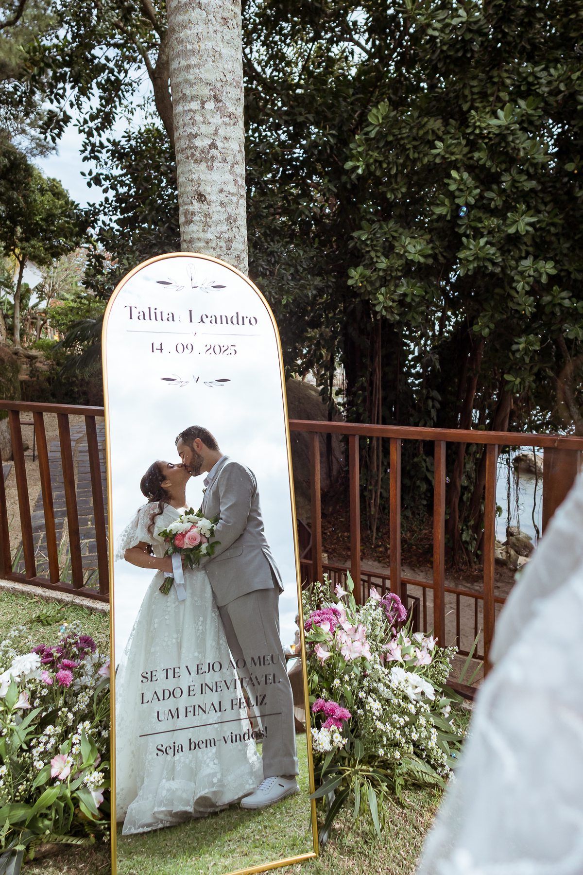 A celebração foi conduzida pela irmã da noiva, que emocionou a todos em seu texto que foi criado em colaboração com a celebrante Aly Garcia. E, para deixar tudo ainda mais especial, um detalhe cheio de memória afetiva marcou o dia: Leandro sempre presenteava Talita com um Batom, aquele chocolate clássico, e isso se tornou parte da cerimônia. Os noivos e os convidados brindaram com Batom, em um dos momentos mais divertidos e únicos da celebração.