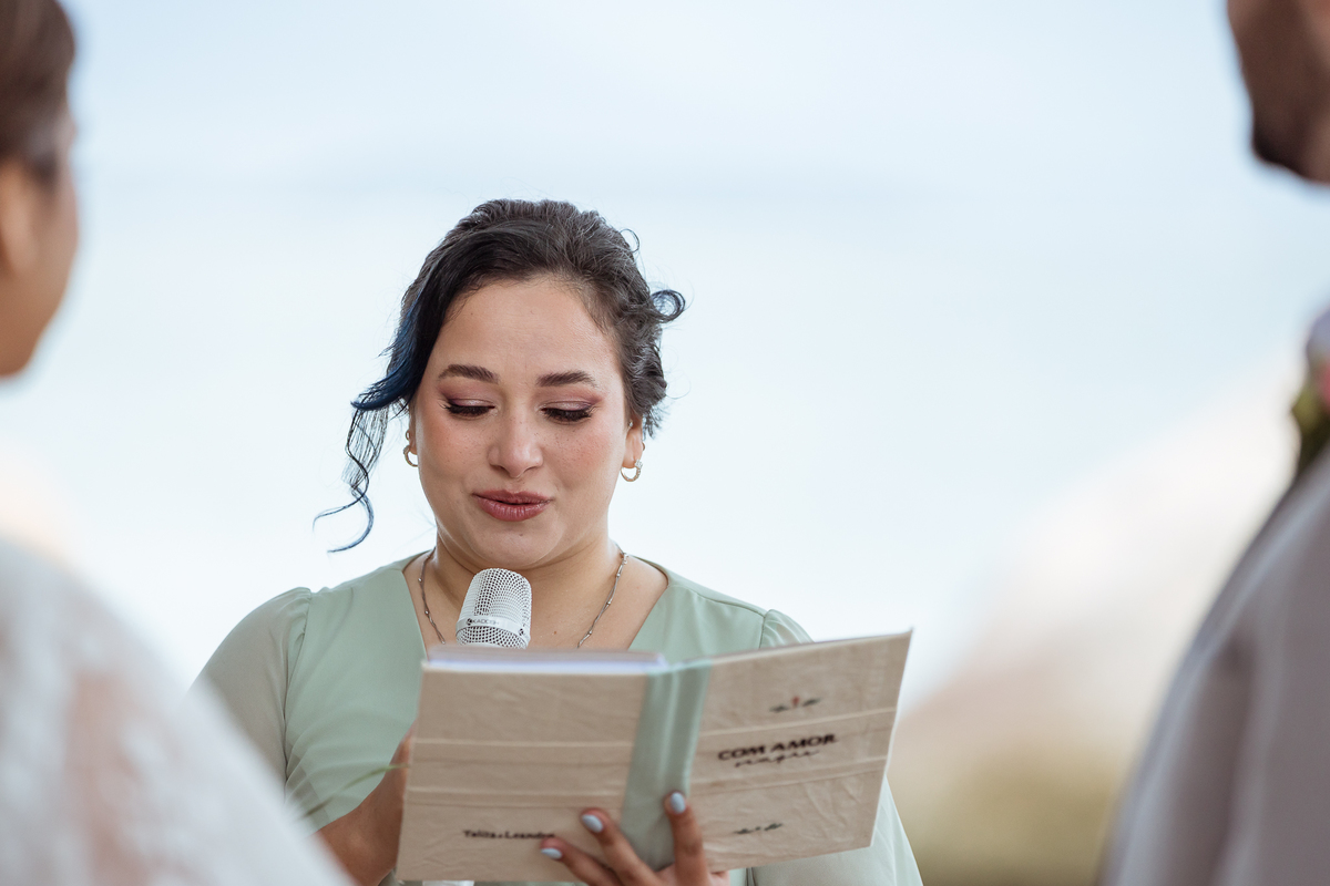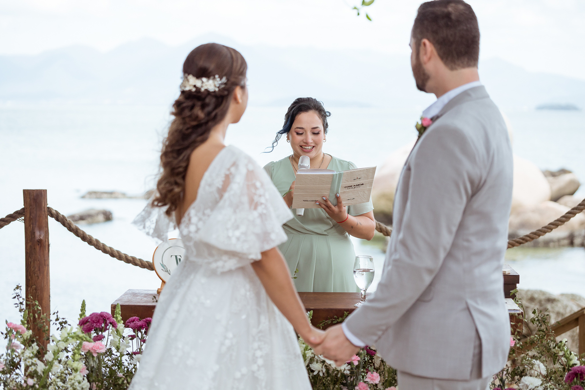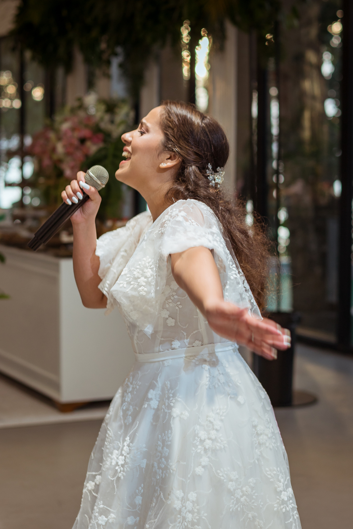 A celebração foi conduzida pela irmã da noiva, que emocionou a todos em seu texto que foi criado em colaboração com a celebrante Aly Garcia. E, para deixar tudo ainda mais especial, um detalhe cheio de memória afetiva marcou o dia: Leandro sempre presenteava Talita com um Batom, aquele chocolate clássico, e isso se tornou parte da cerimônia. Os noivos e os convidados brindaram com Batom, em um dos momentos mais divertidos e únicos da celebração.