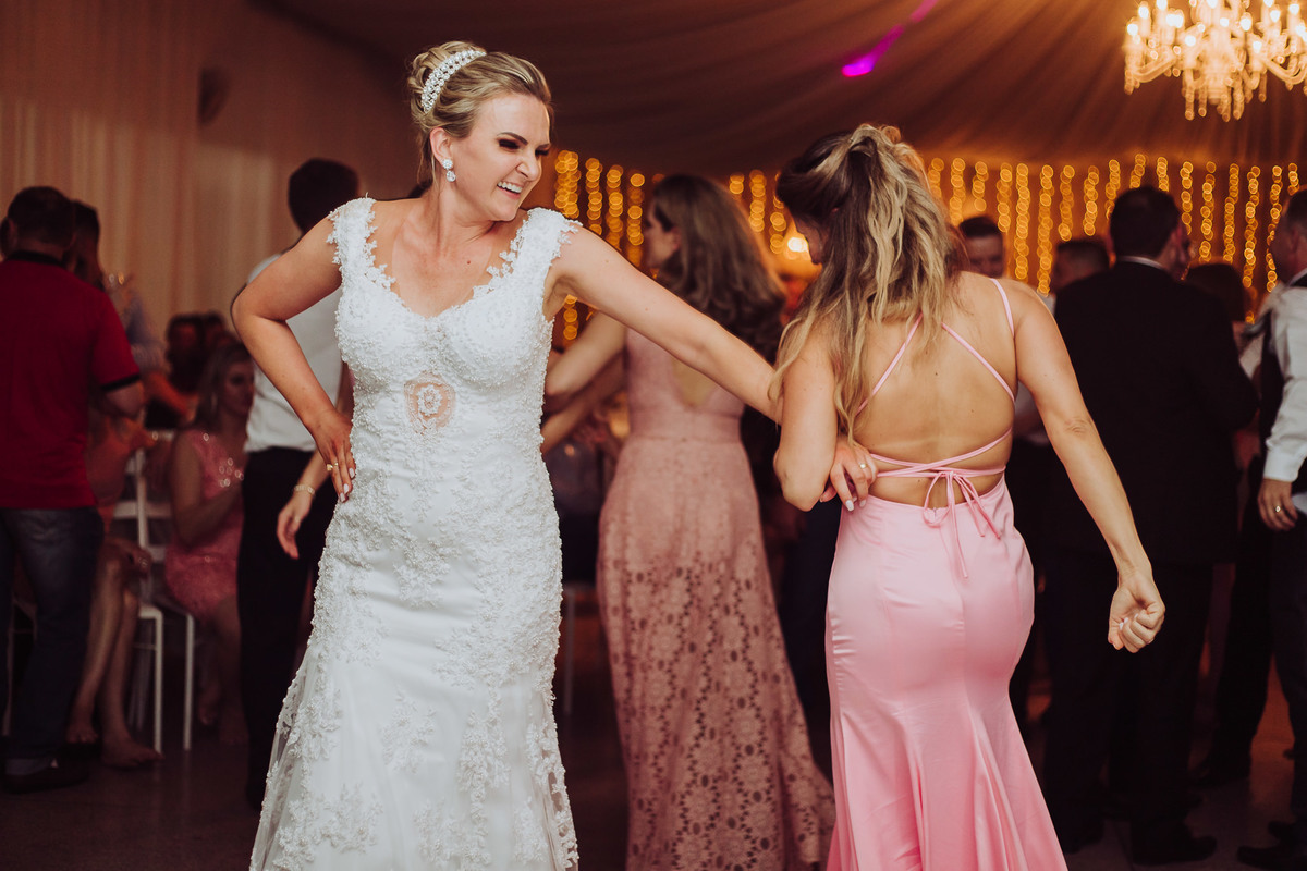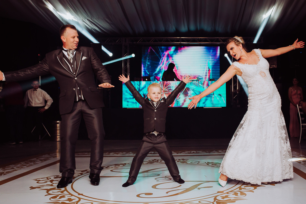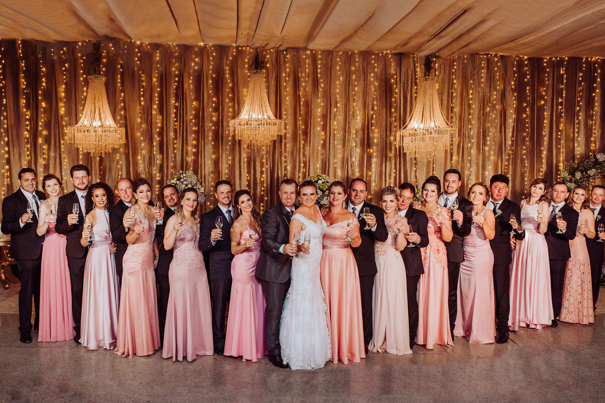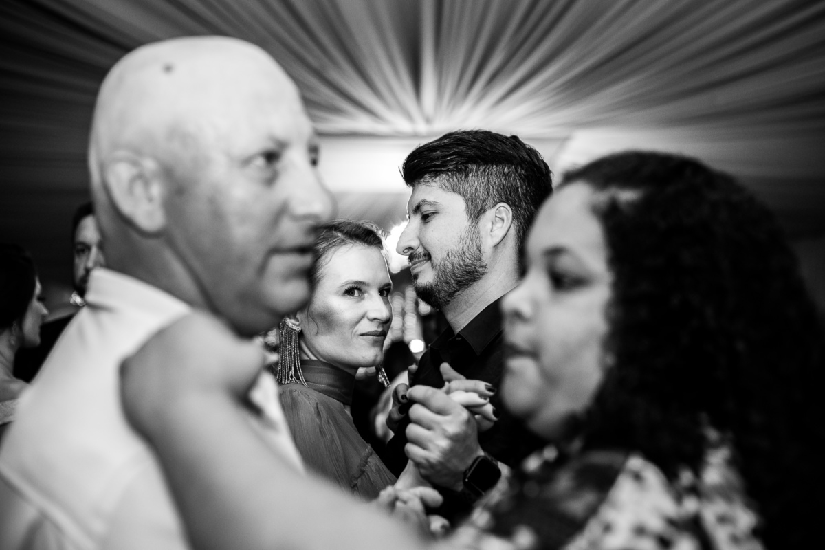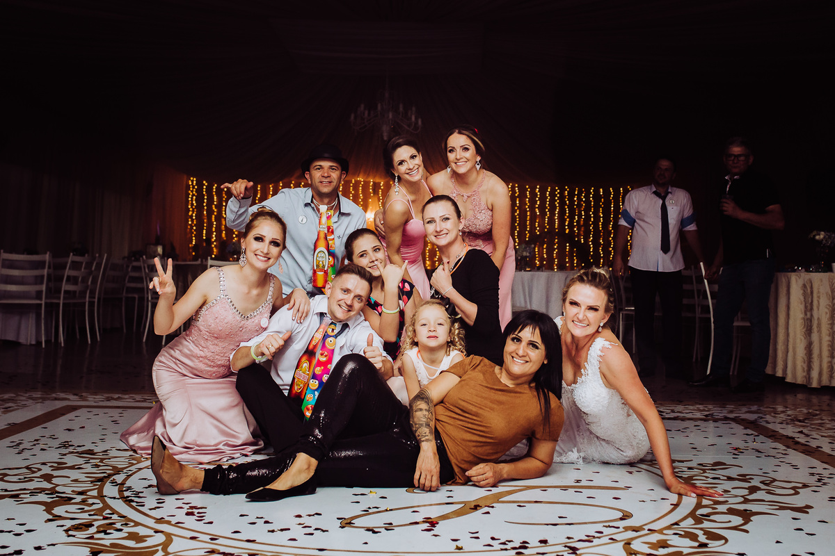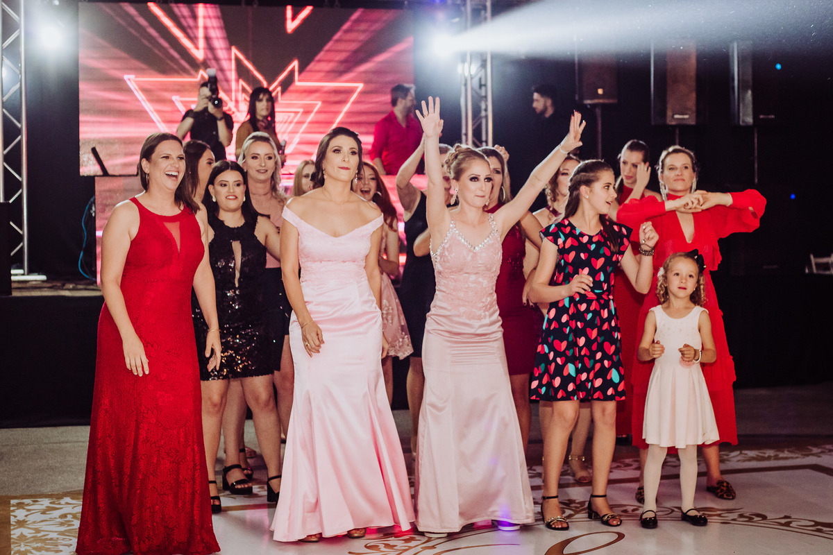 Os padrinhos fizeram, junto com os noivos, coreografias muito bem ensaiadas e já deixaram todo mundo doido para ir para a pista.