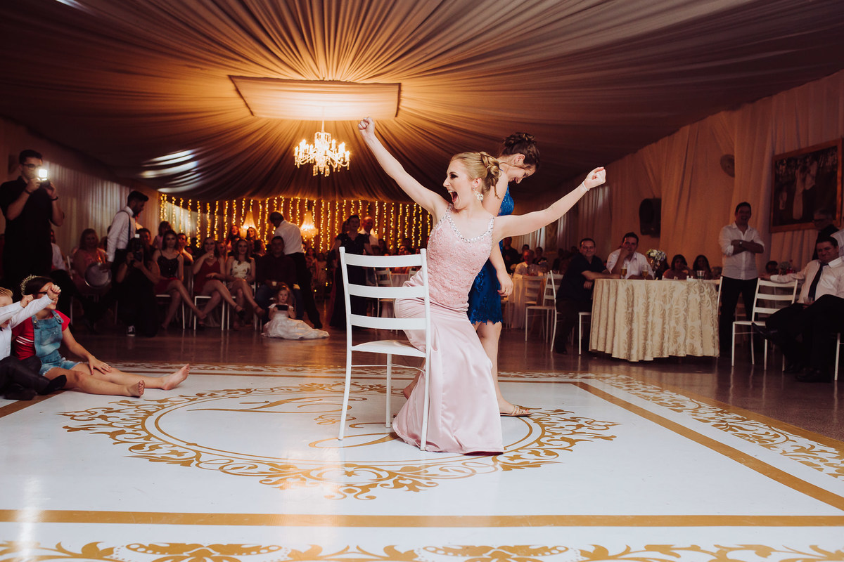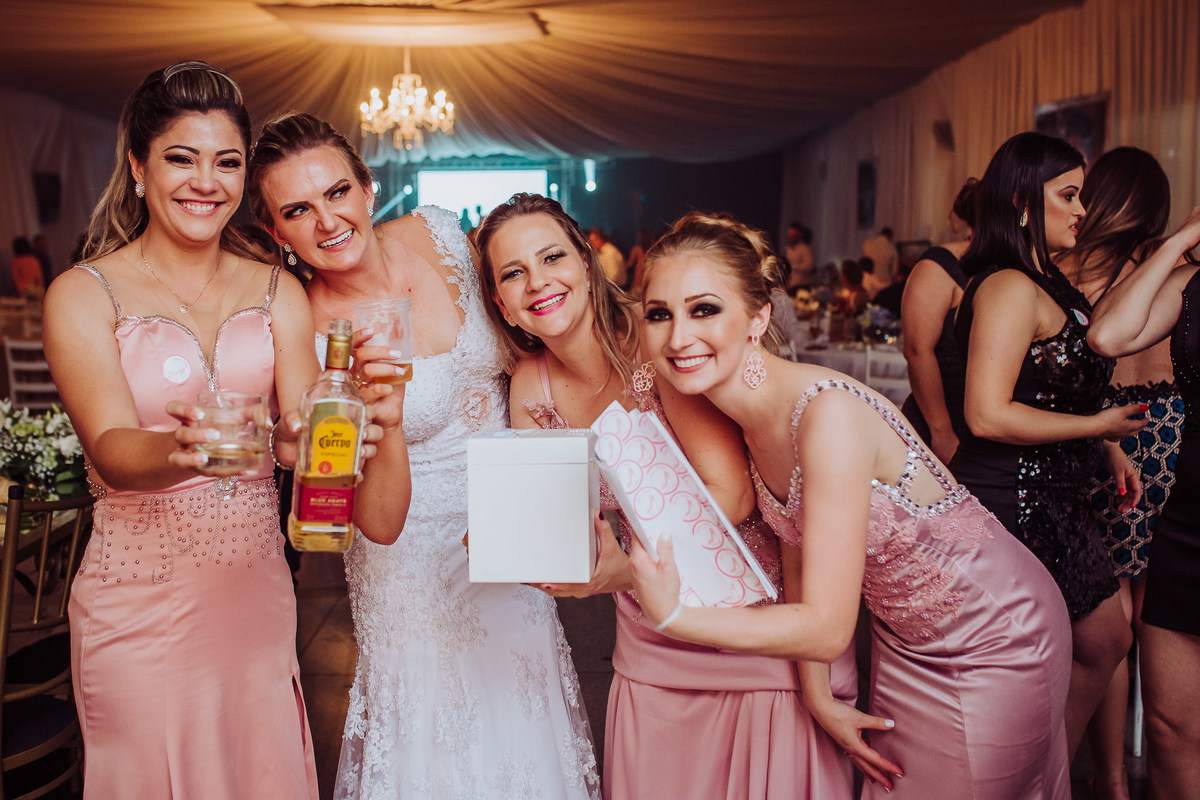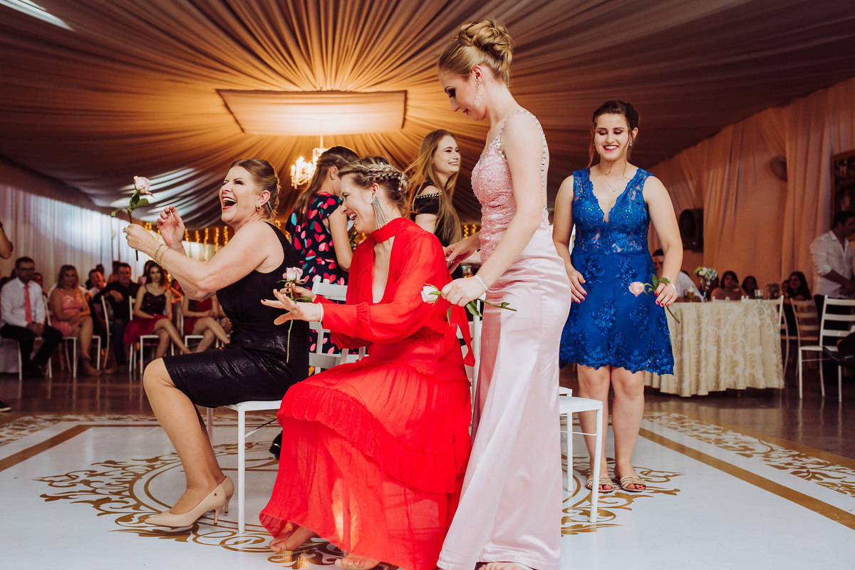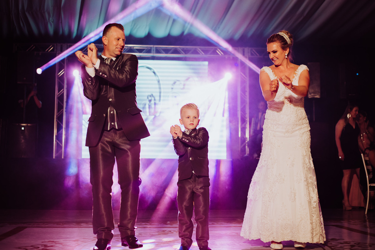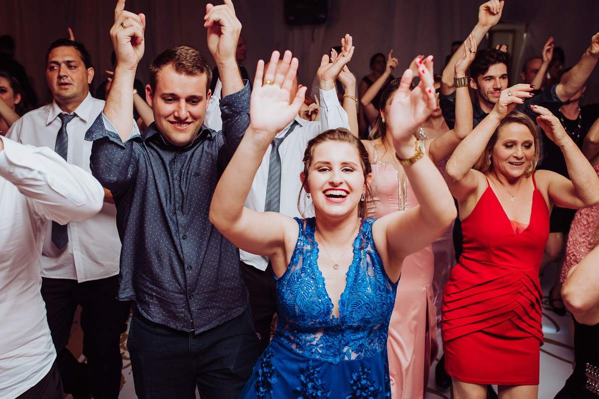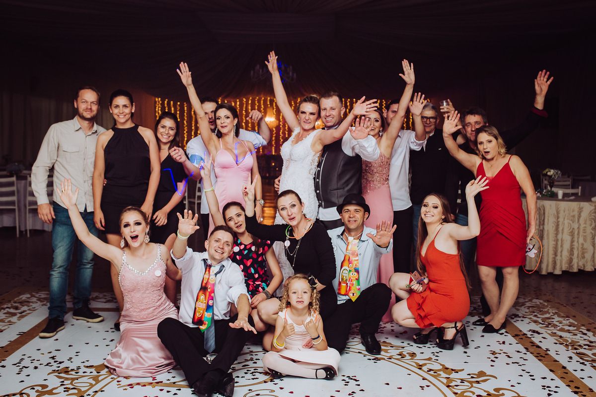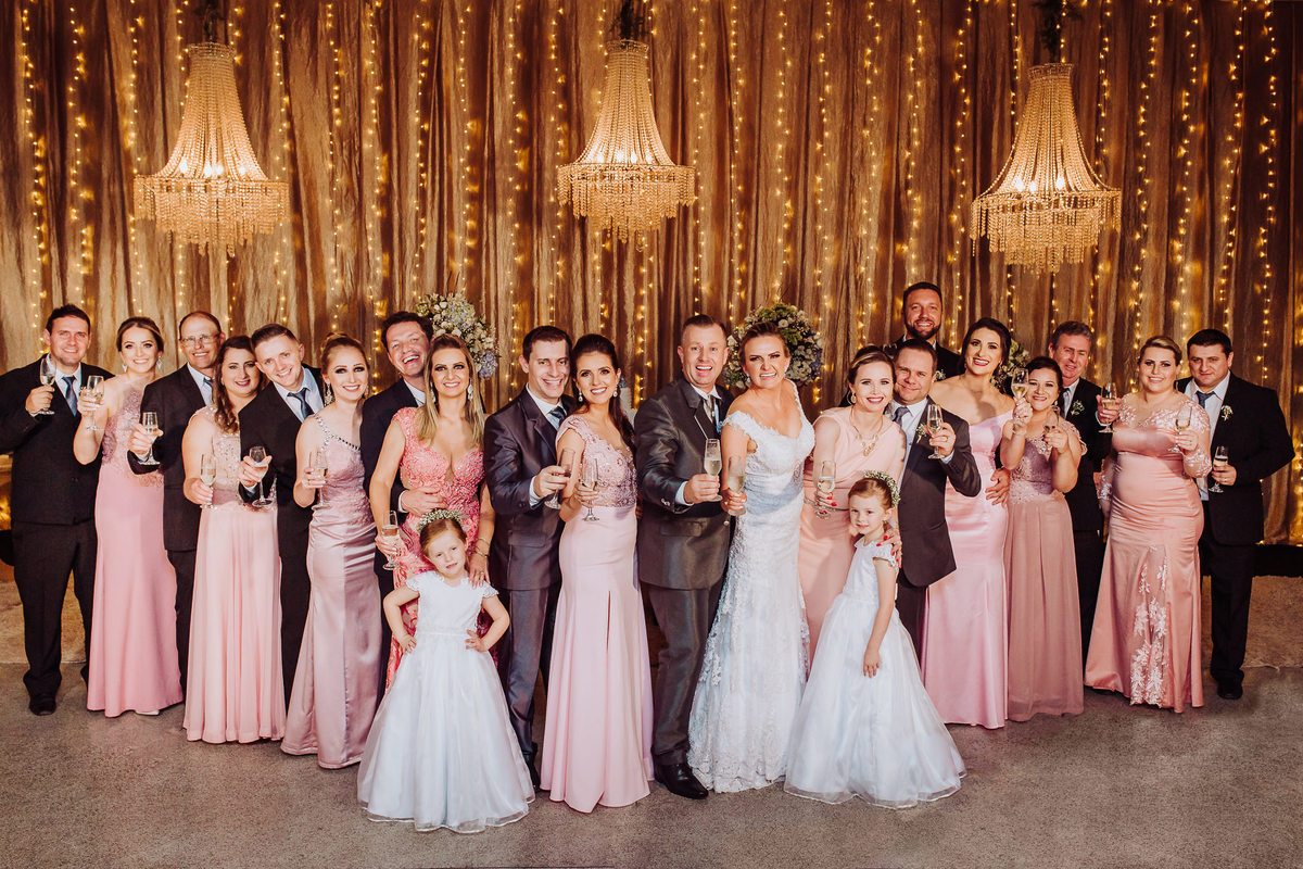 Os padrinhos fizeram, junto com os noivos, coreografias muito bem ensaiadas e já deixaram todo mundo doido para ir para a pista.