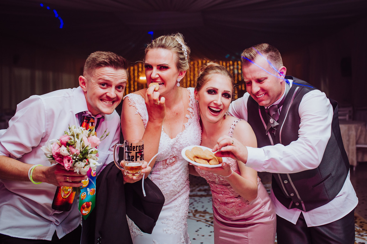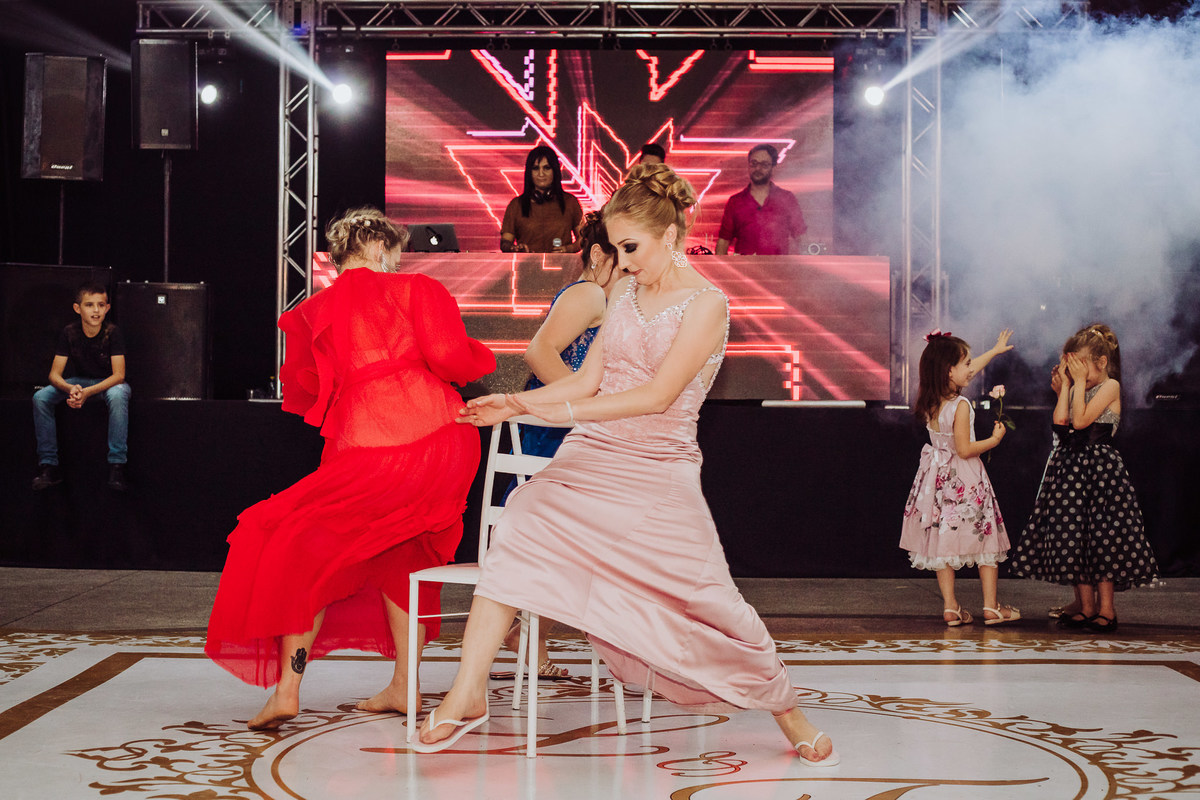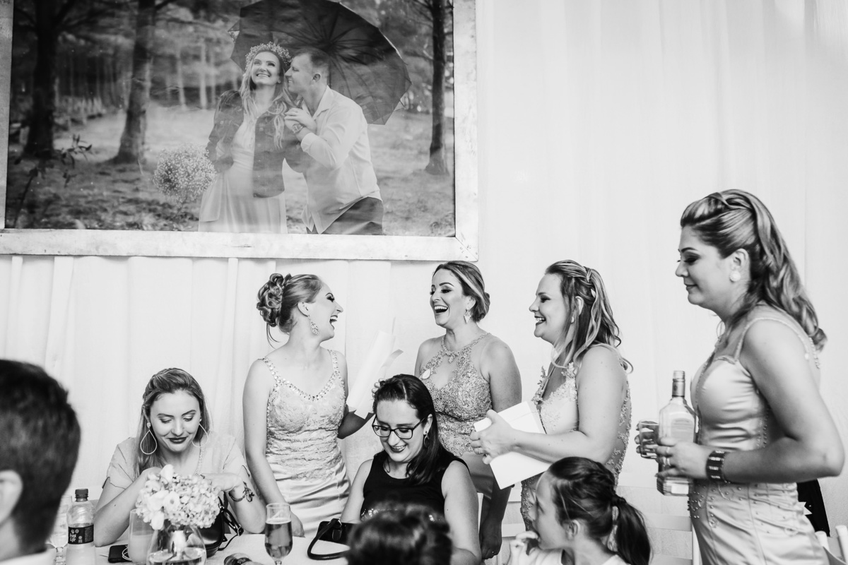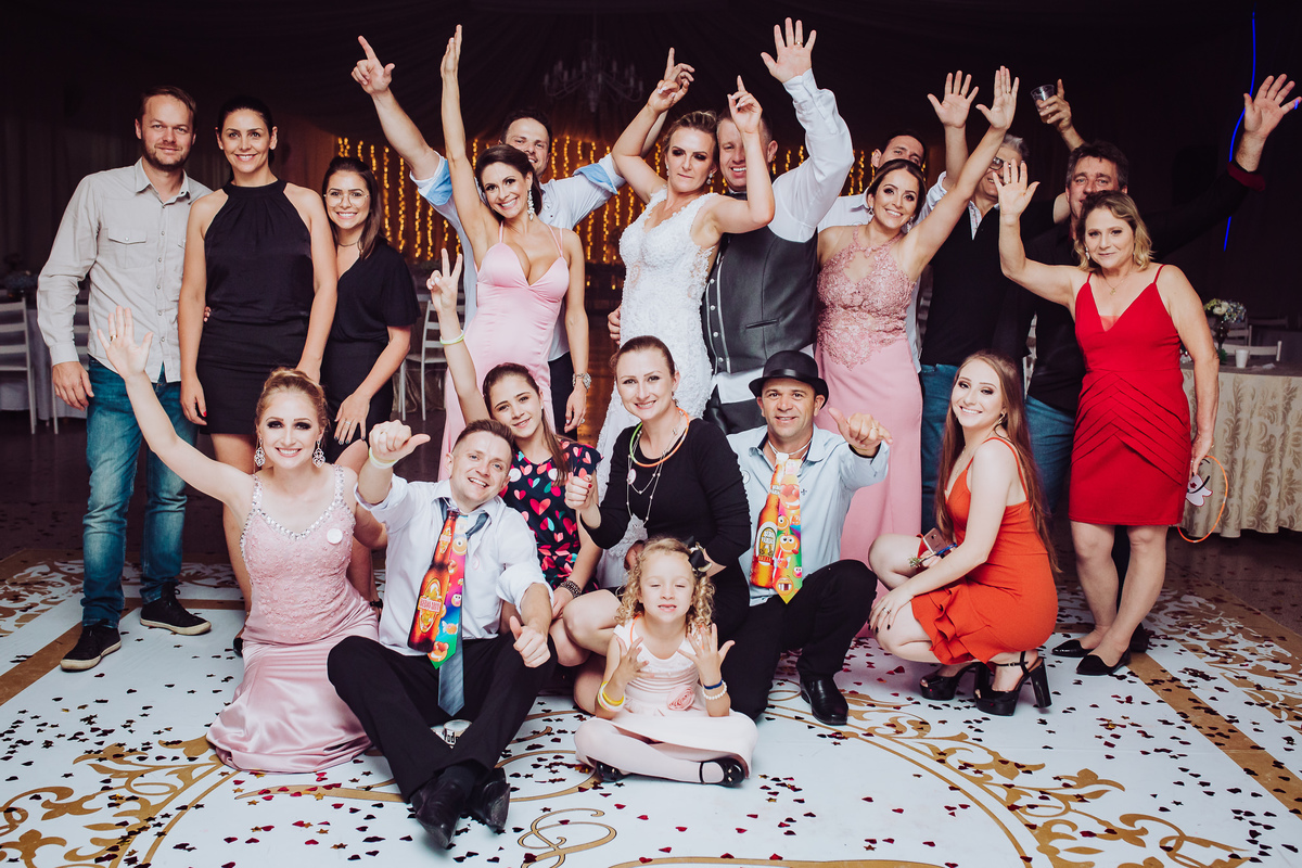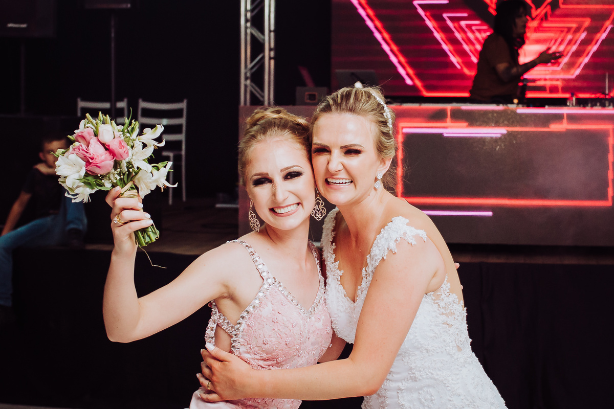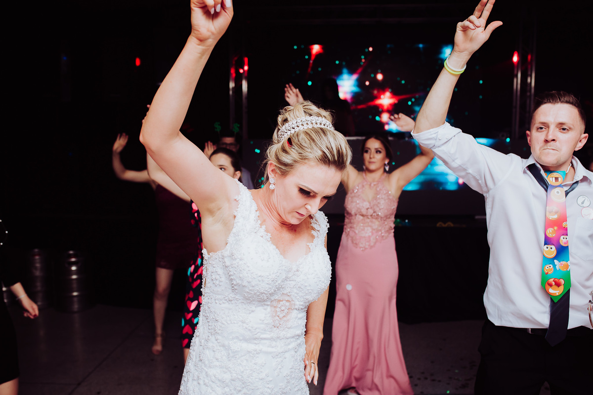 Os padrinhos fizeram, junto com os noivos, coreografias muito bem ensaiadas e já deixaram todo mundo doido para ir para a pista.