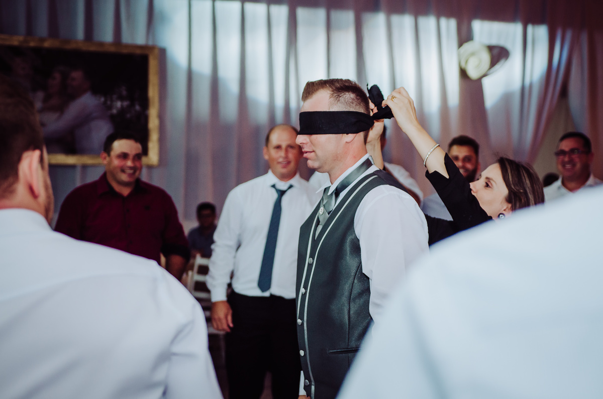 O Noivo, de olhos vendados, escolheu um convidado e deu a ele a piriguete.