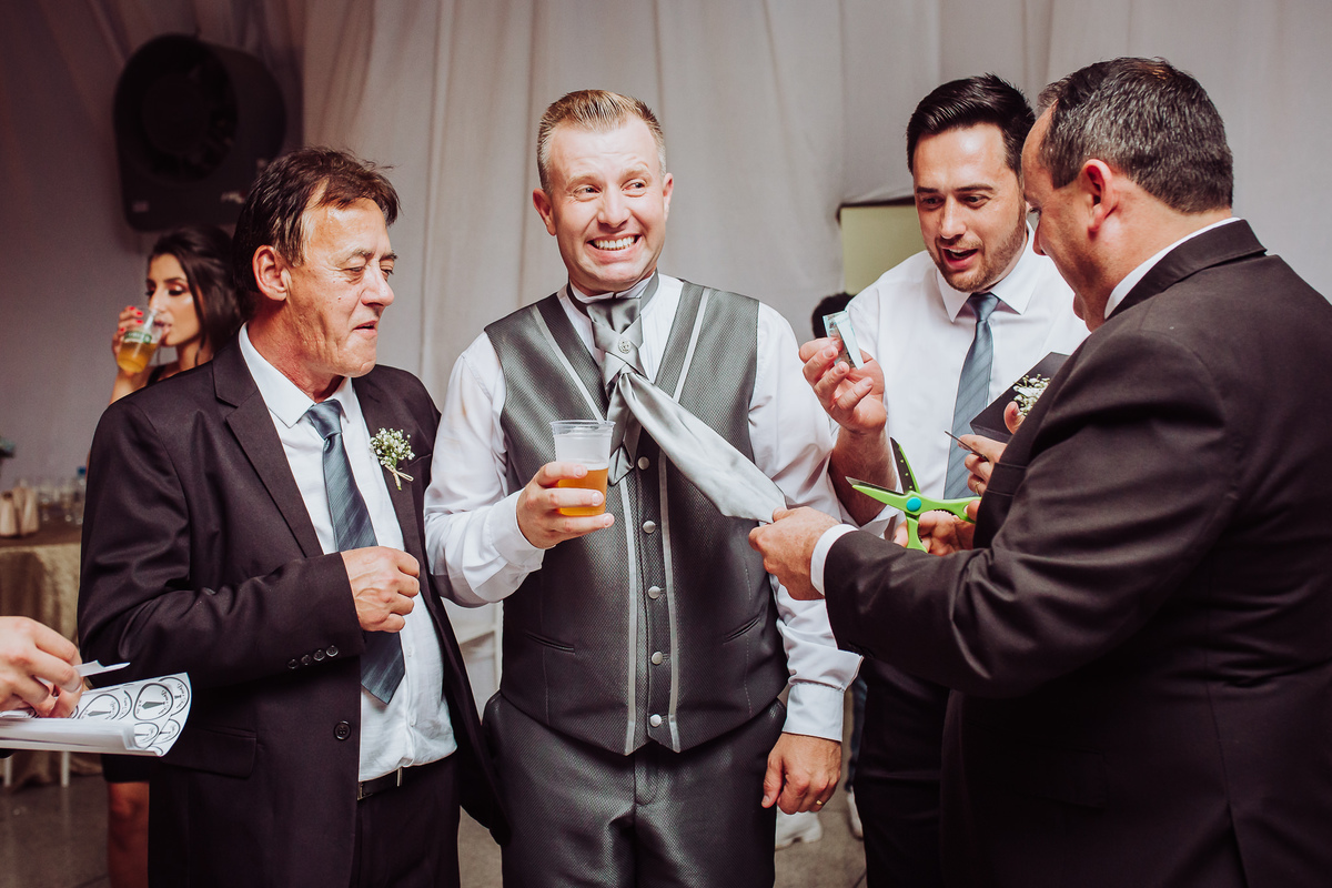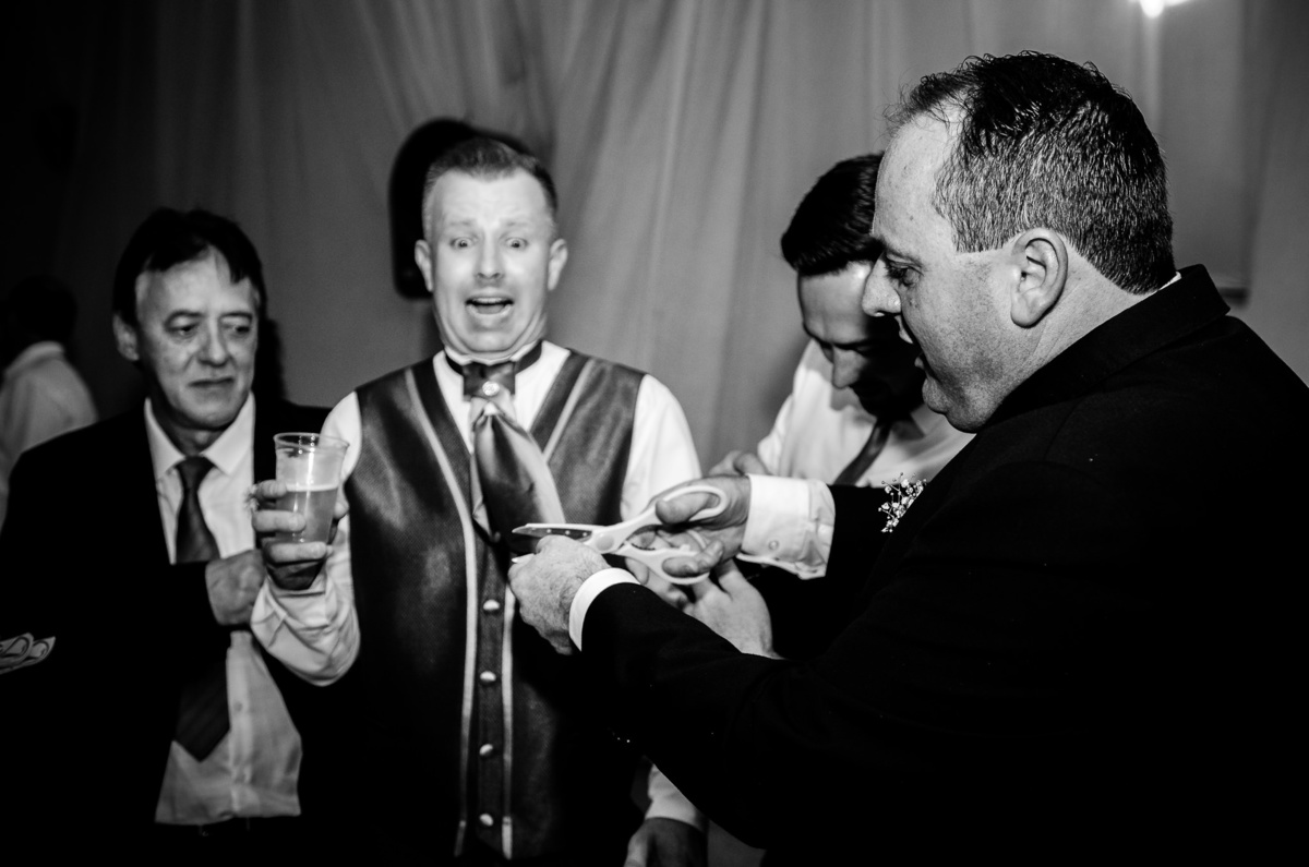No meio da passada da gravata ela acabou e começaram a cortar partes que não posso mencionar aqui (hahahaha).