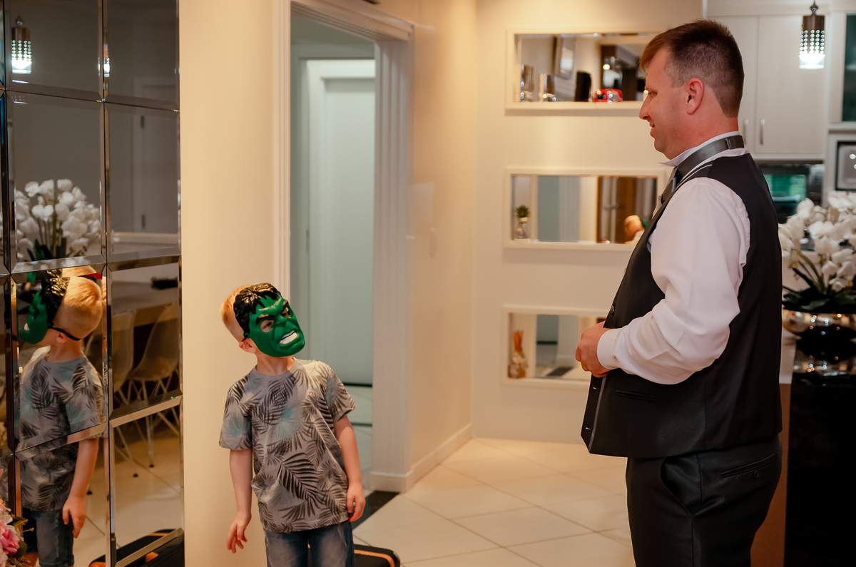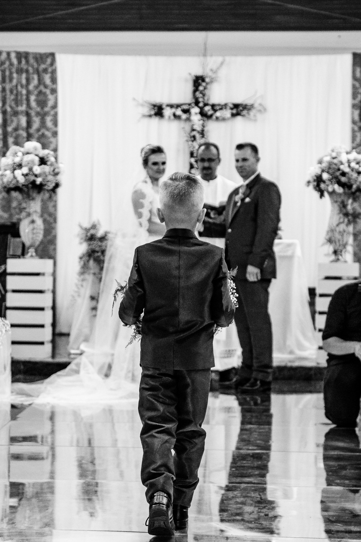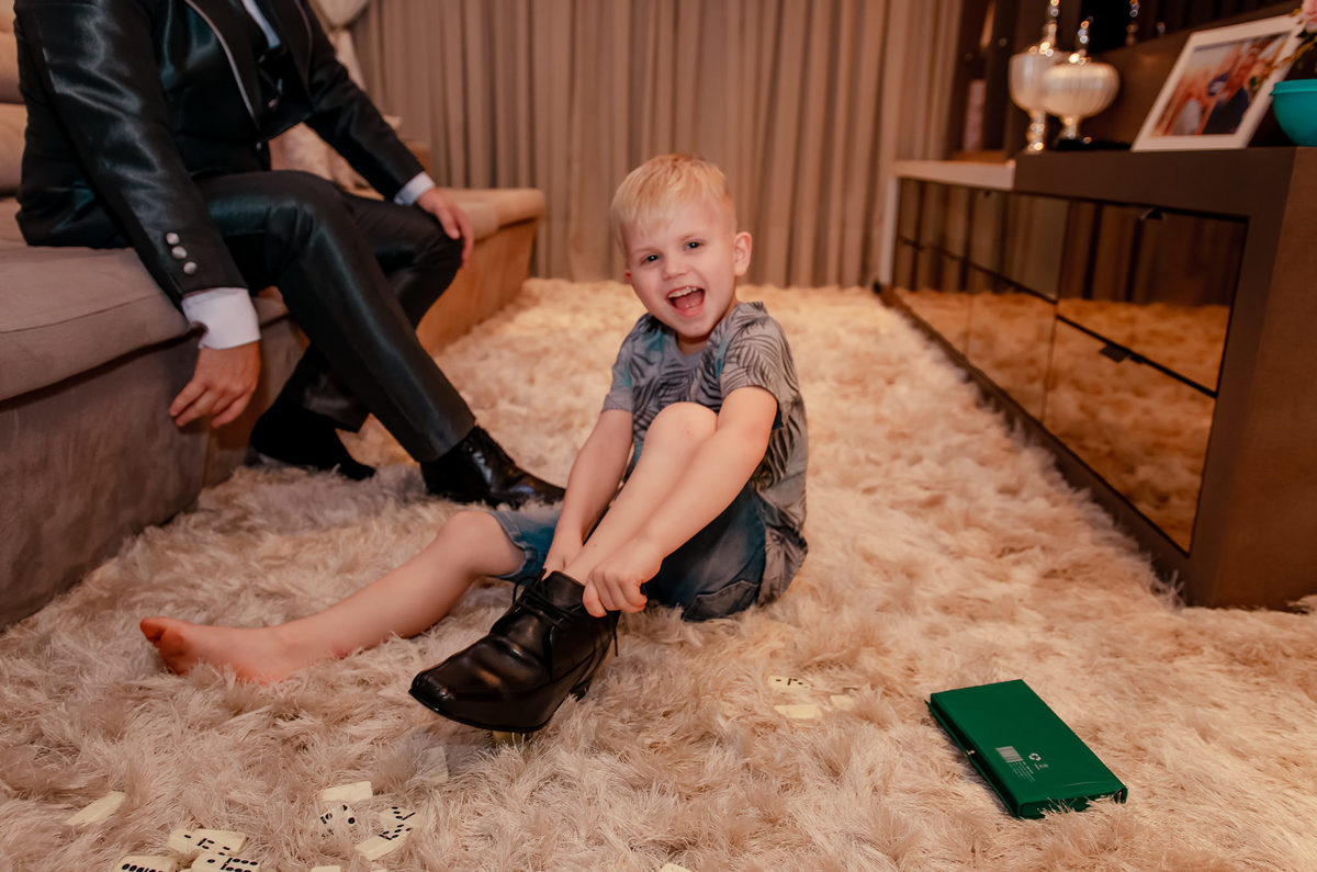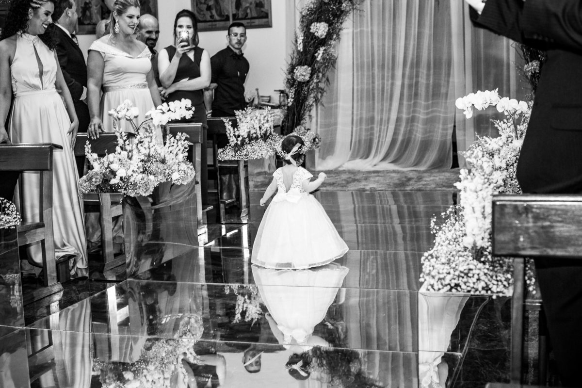 O Theo, que queria entrar com a Lúcia no lugar do pai dela, até fez companhia para os pais no altar por vários momentos.