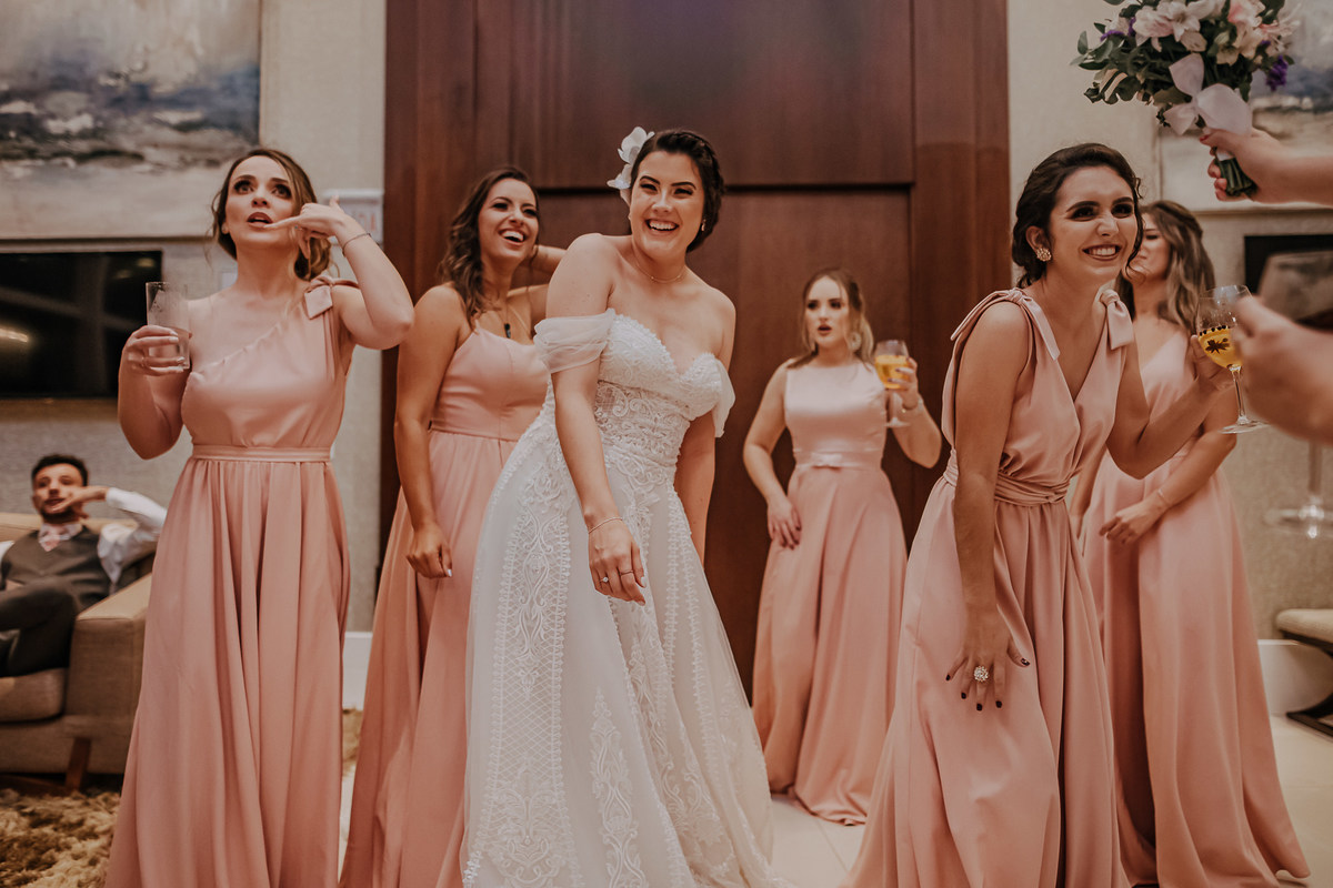 Decidiram então fazer a celebração na mesma data planejada, só que apenas para pais e padrinhos... Chamamos isso de Mini Wedding. E foi lindíssimo!